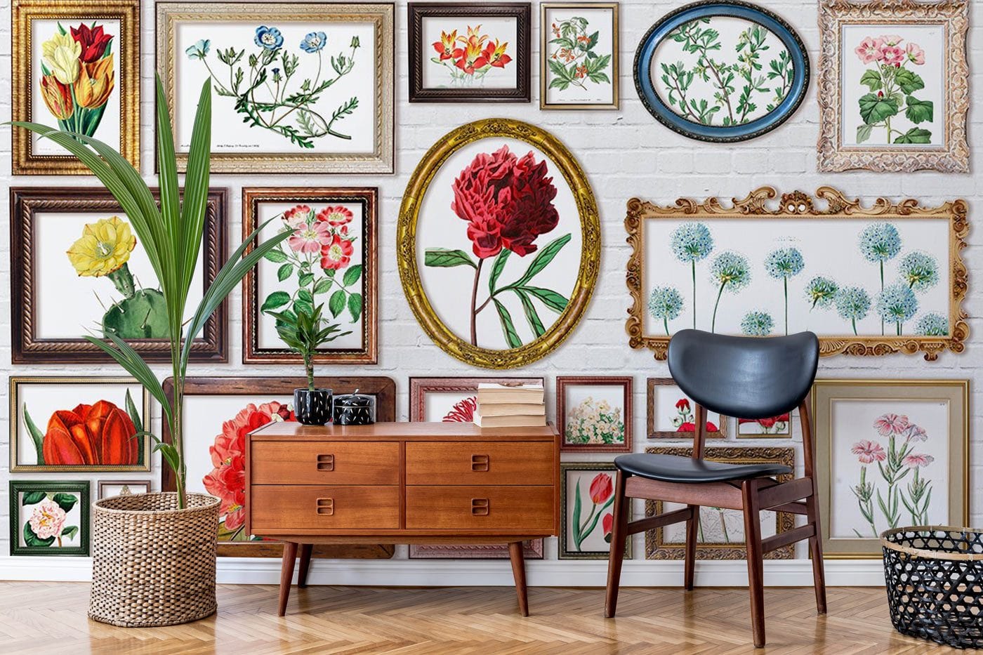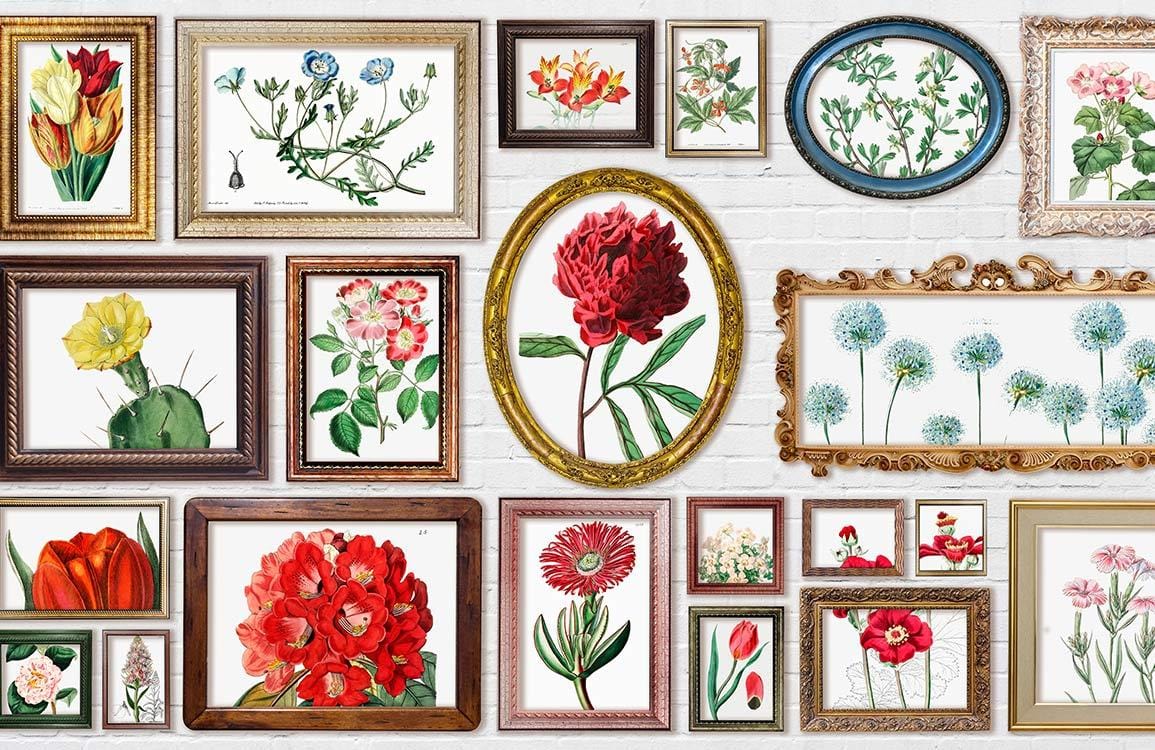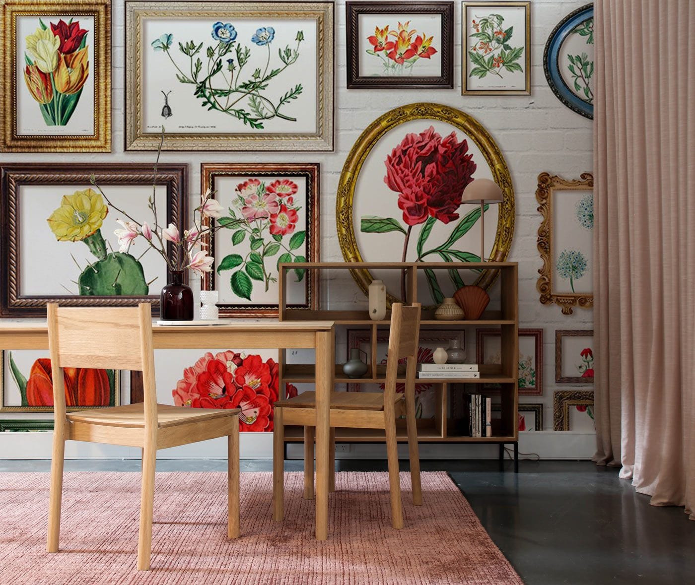 Adorn your walls with this exquisite Flower Photograph Wallpaper Mural, where botanical artistry meets interior sophistication. Each frame showcases a delicate balance of intricate floral imagery, inducing a gallery-like ambience. Carefully curated hues and timeless, vintage frames breathe elegance into any space, creating a refined atmosphere for both modern and classic interiors.