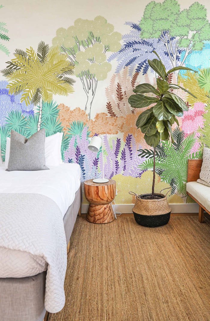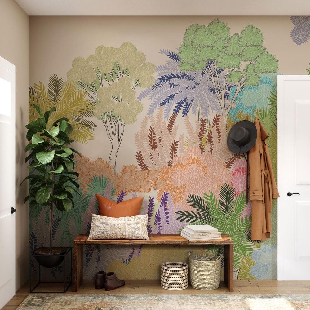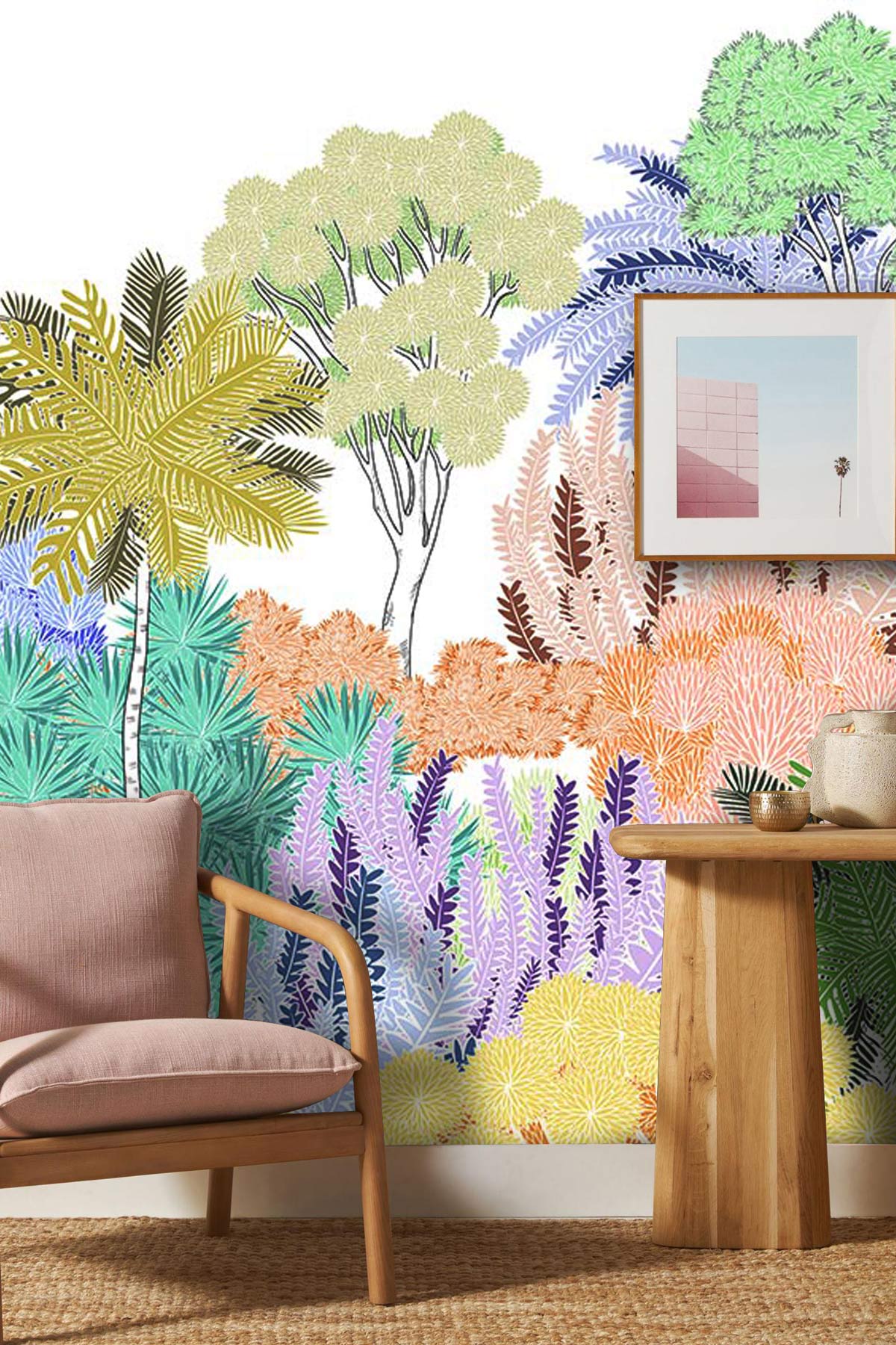 Immerse your space in the serene allure of a tropical forest, with delicate leaves and vibrant foliage in a symphony of beautiful colours. This mural's intricate design brings nature's elegance into the heart of your home, creating an ambiance that is both sophisticated and timeless. Perfectly suited to blend seamlessly with modern and eclectic styles, it invites a tranquil yet dynamic atmosphere to living rooms, bedrooms, and creative spaces.