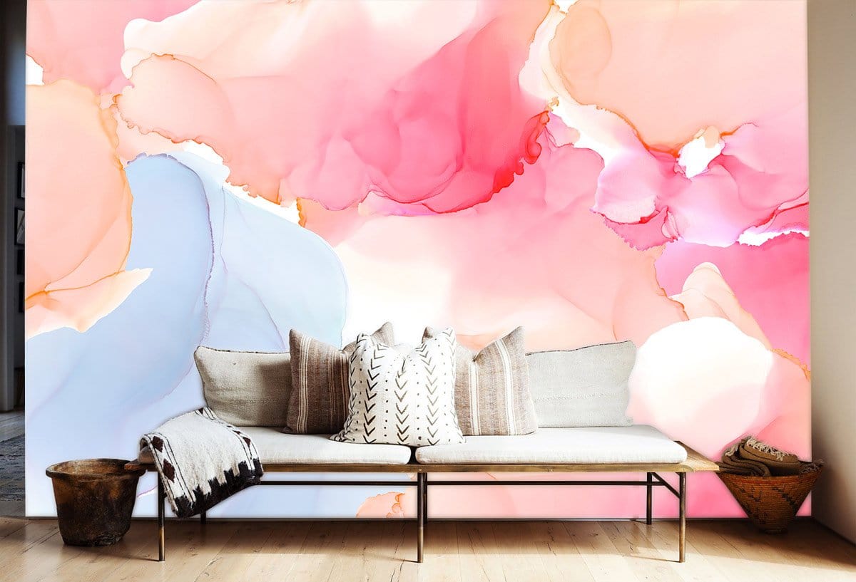 Immerse your space in a serene palette with the Combined Watercolour Wallpaper Mural, where gentle washes of blue, pink, and peach intertwine in an artist's blend of fluidity. Each brushstroke creates a sense of movement, turning your walls into a timeless canvas that speaks to both subtlety and sophistication. This mural, with its graceful and airy design, effortlessly finds its place in modern or vintage-inspired interiors.
