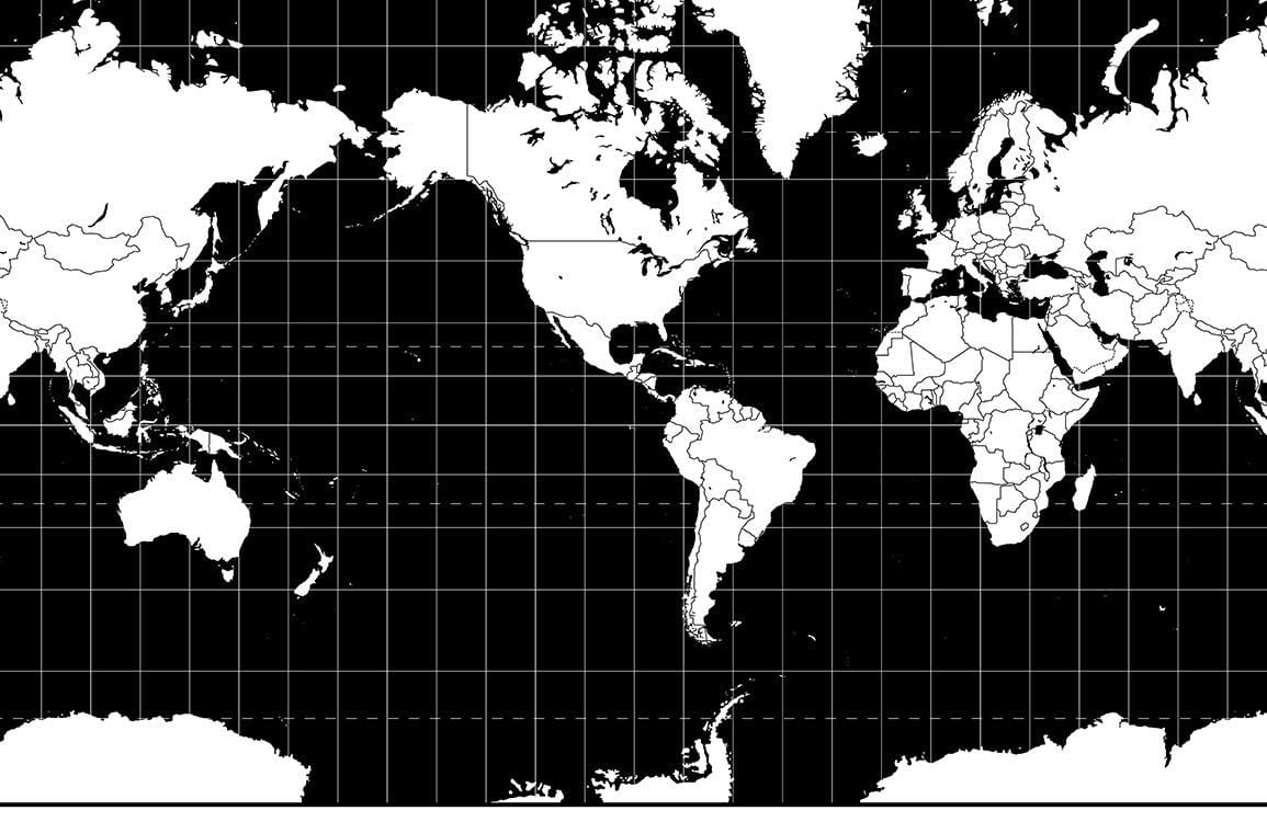 Discover our cool black & white world map wallpaper mural selections from Ever Wallpaper. This map wall mural is ideal for adding a cool unique feeling to any place in your bedroom or home office. Works well with modern style furniture of your choice.