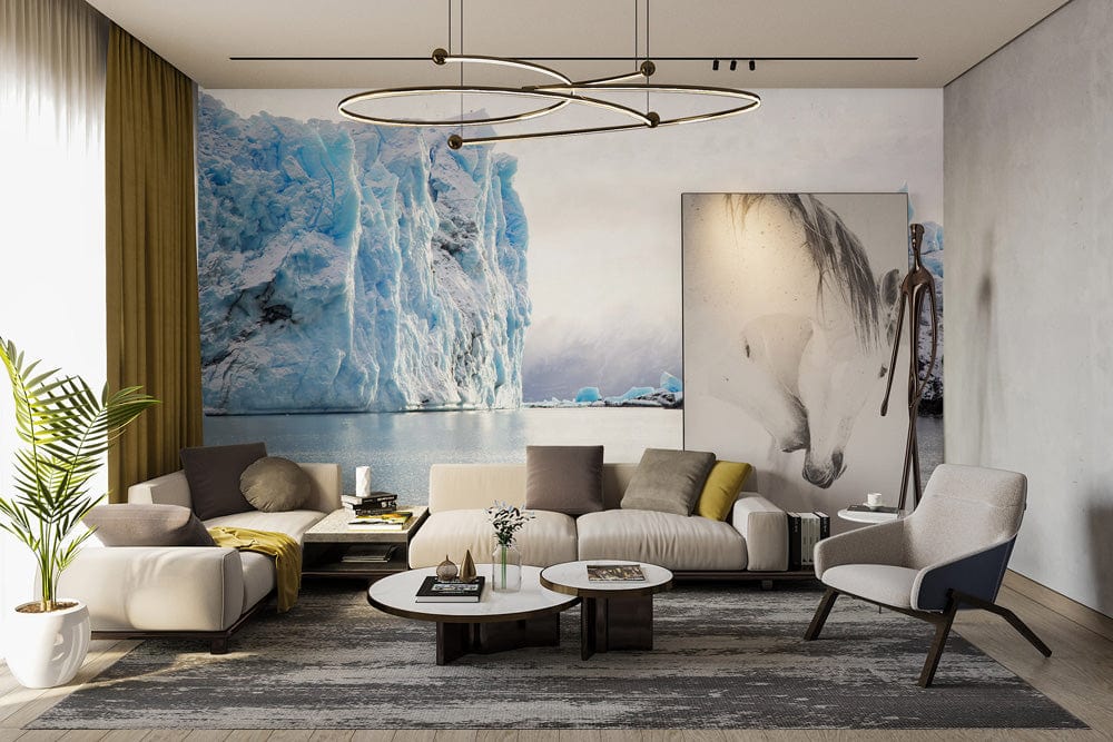 Bring the power of nature to your space with this beautiful Glacier Wallpaper Mural. With the soothing colour palette, the glacier theme will add an elegant touch to your home and make it feel like you've been whisked away to a faraway land. Featuring the beauty and majesty of glaciers, this realistic design and subdued colour scheme add a cool and icy touch to your space. It's best suited for a room that doubles as a retreat and fits in with most design styles.