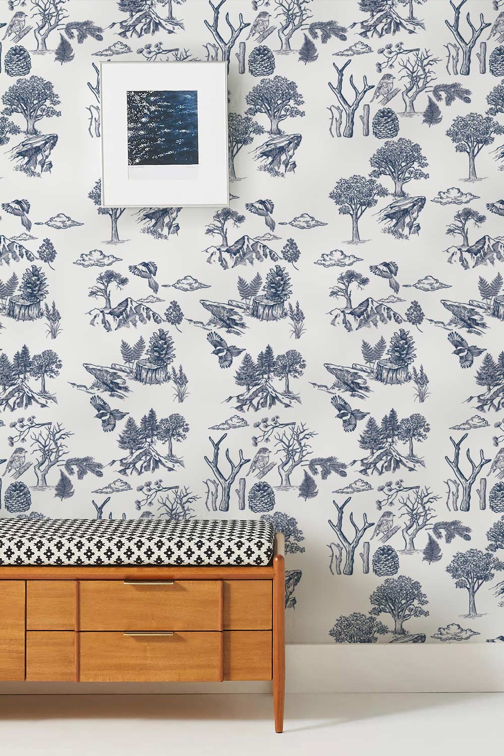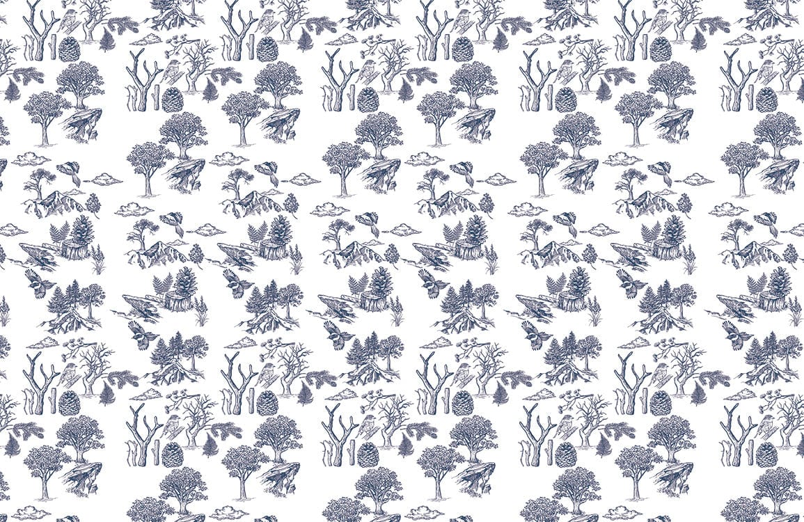 Immerse yourself in the serene elegance of the Mountain Top Sketch II Wallpaper Mural. This design captures the essence of lush forestry with intricate sketches of trees and landscapes against a crisp, white backdrop. Ideal for adding a touch of sophistication to any room, its detailed artistry invites a timeless charm that complements both modern and classic interiors.