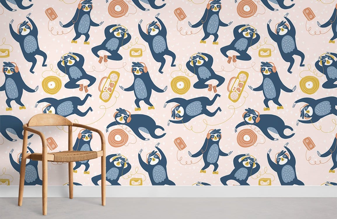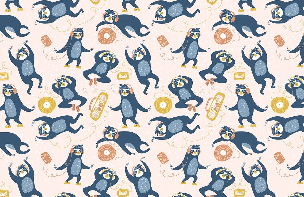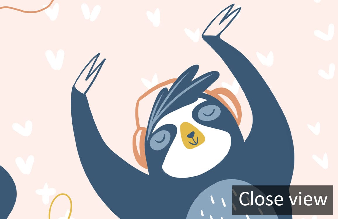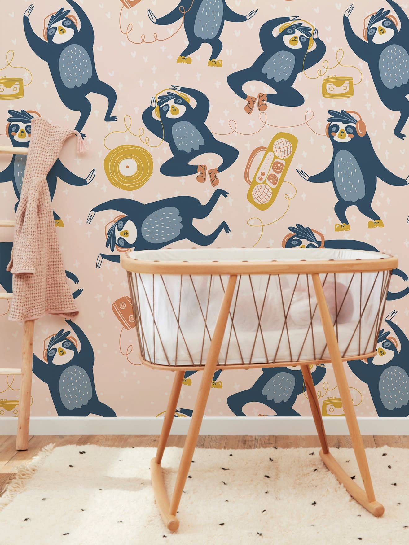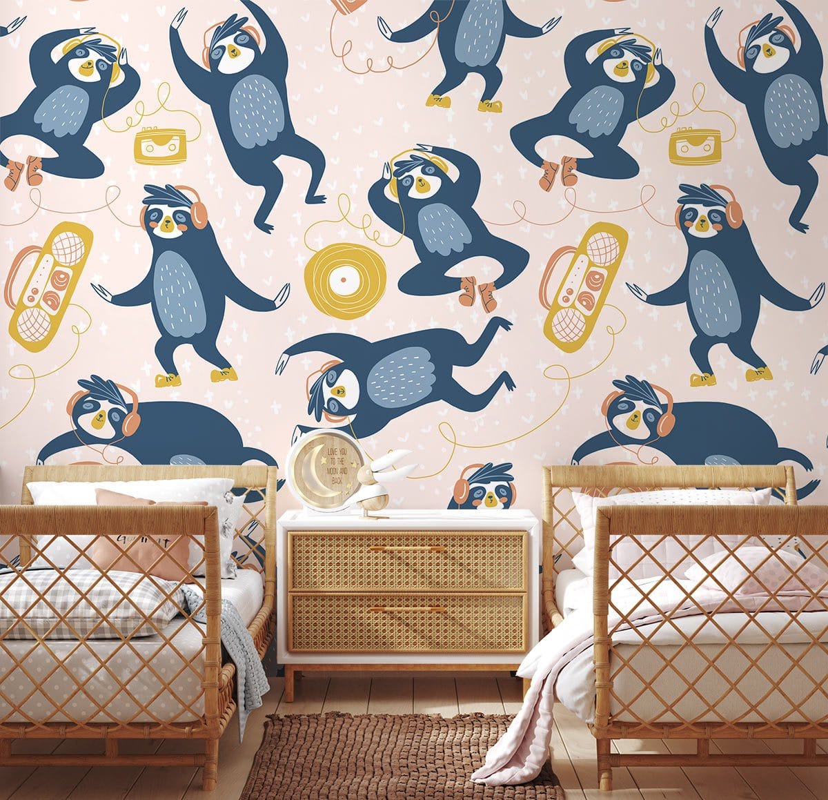 Your children are going to love this cute sloth pattern wallpaper mural! This adorable cool musician sloth print wall mural under pink colour background is suitable for all kids room and baby nursery, especially for girls. Place this smiling sloth wall mural to your wall and enjoy the happiness and joy it brings to you and your children.