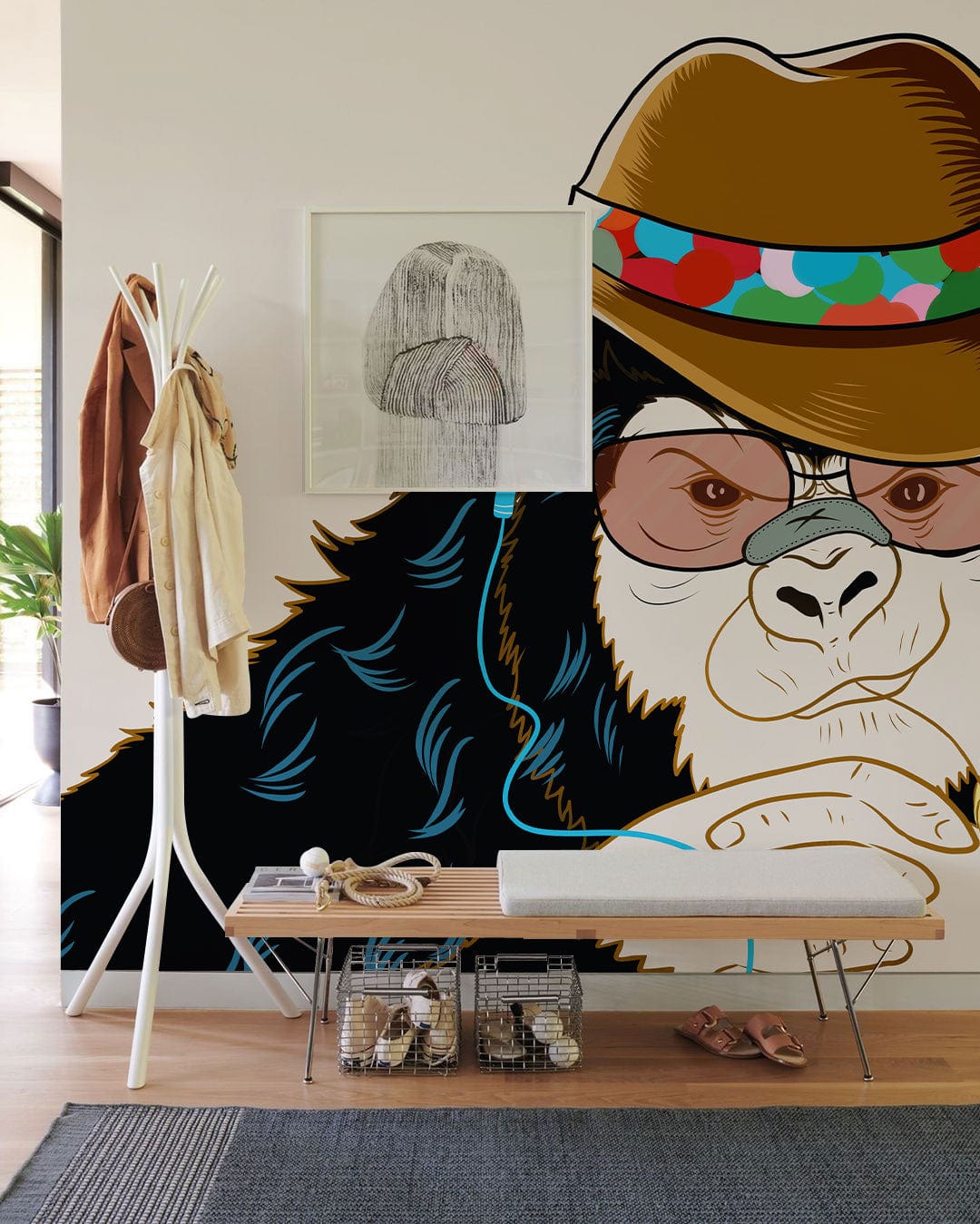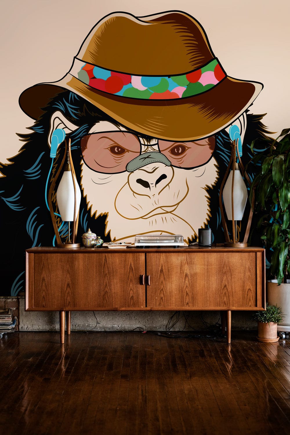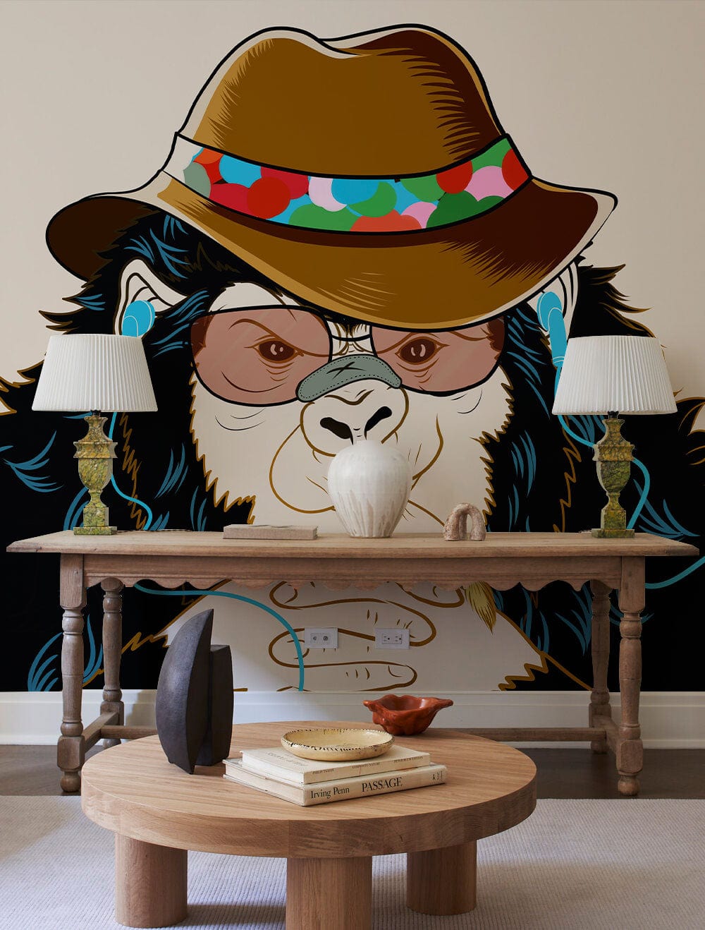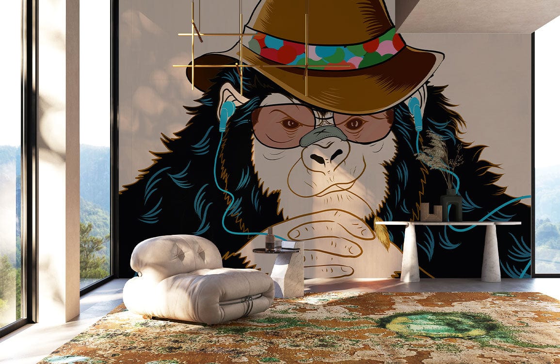 Step into a world of whimsical charm with the Cowboy Gorilla Wallpaper Mural. Its imaginative design features a dapper gorilla adorned with a vibrant hat and sleek sunglasses, offering a playful yet sophisticated touch. The intricately illustrated textures bring a sense of artistic flair, while the mural's dynamic colours spark intrigue and style. Perfectly suited to create a statement wall, this mural effortlessly complements a range of interior themes from contemporary to eclectic.