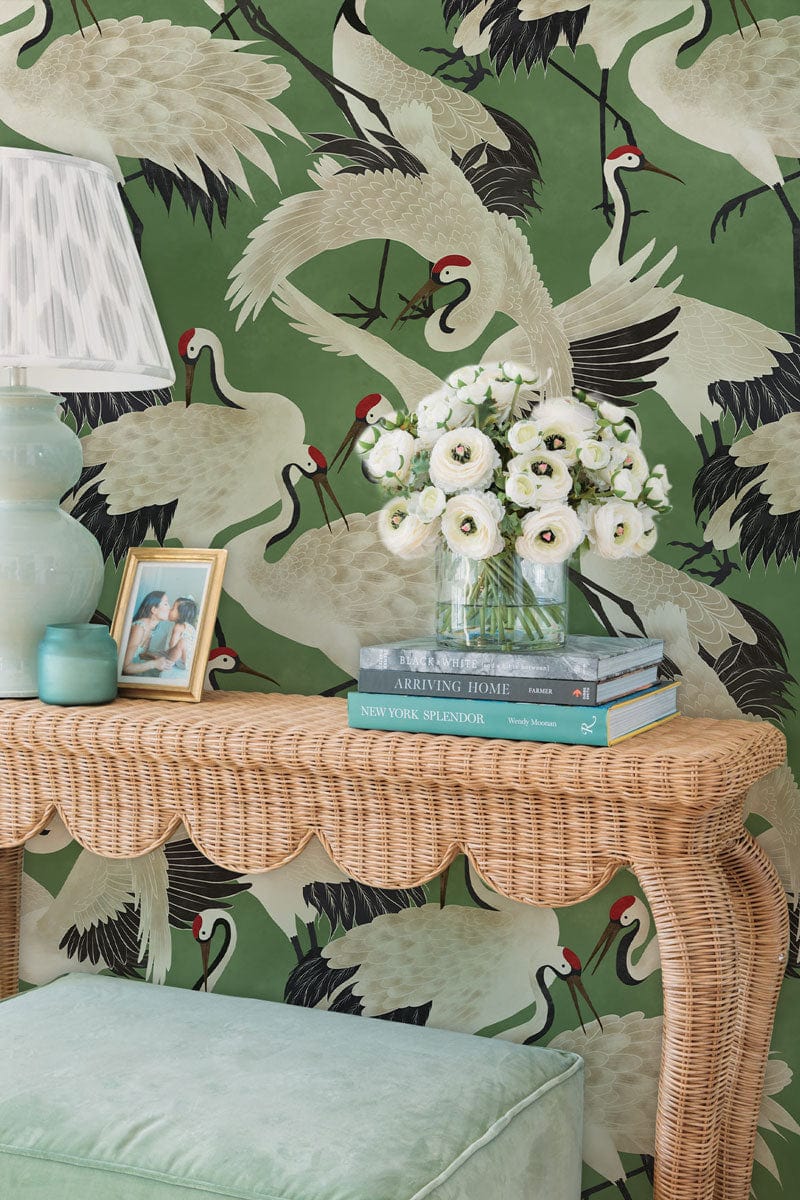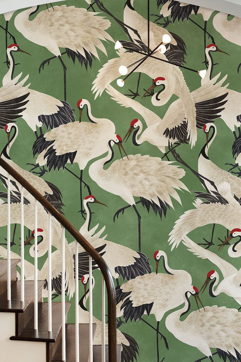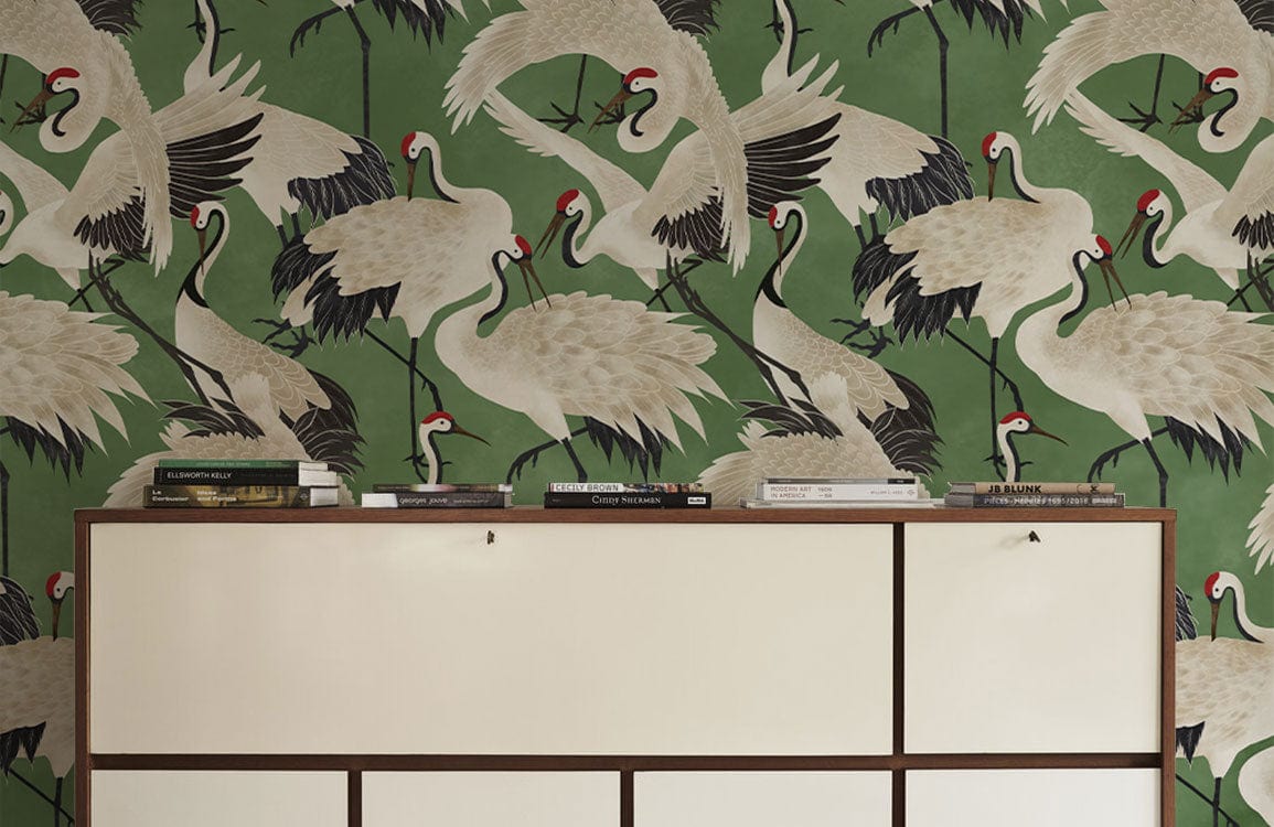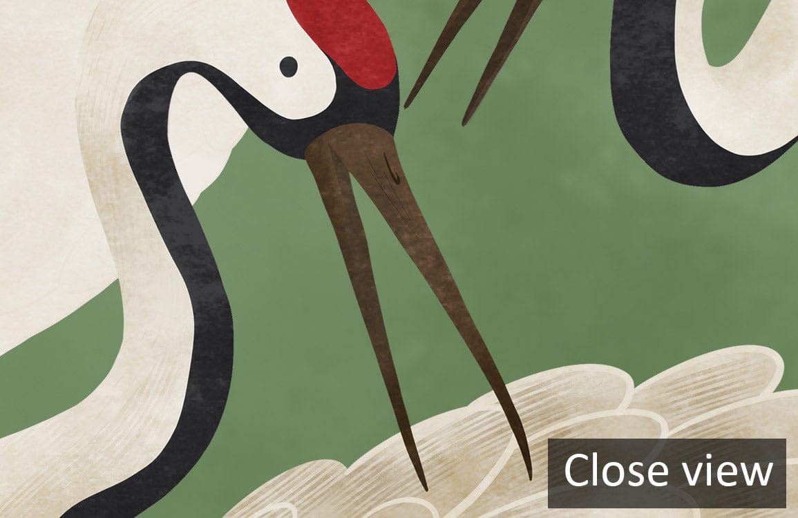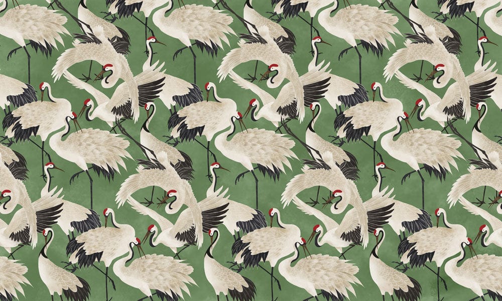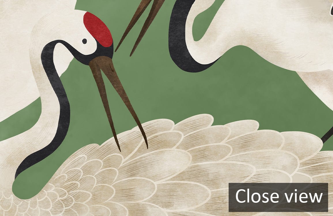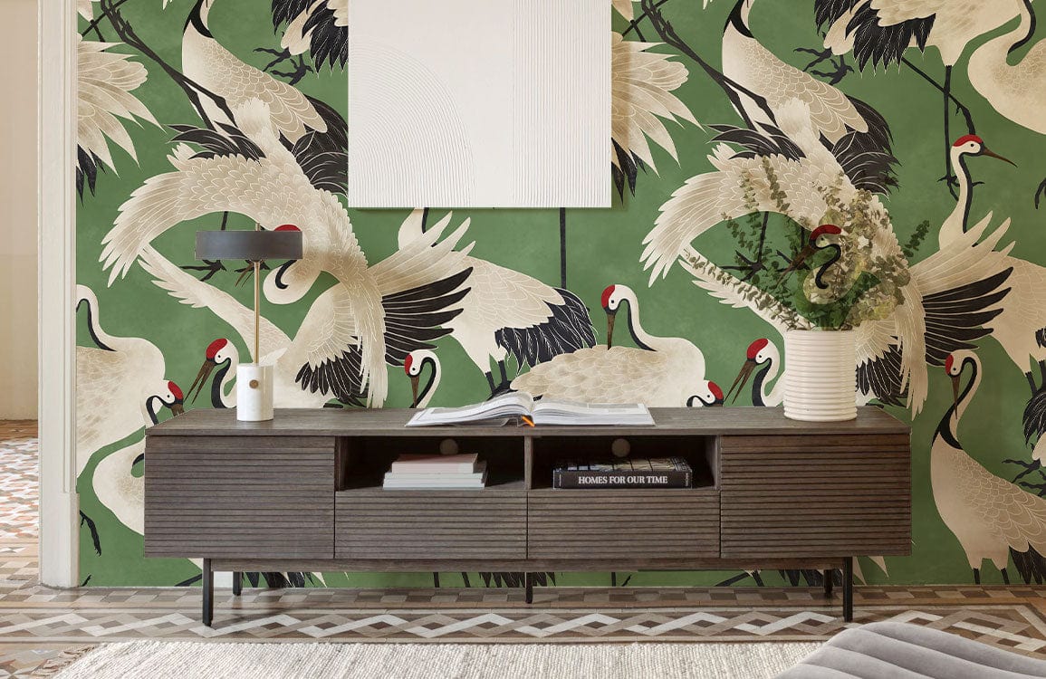 Offering a serene yet striking composition, the Cranes on Green Wallpaper Mural captures the graceful elegance of cranes amidst a lush verdant backdrop. Each bird is rendered with exquisite detailing, showcasing delicate feathers and poised stances that convey a sense of calm and sophistication. The intricate play of light and texture adds depth to the scene, making it a stunning focal point in any room. This mural brings timeless beauty and an artistic flourish to interiors, easily complementing both classic and contemporary décor.