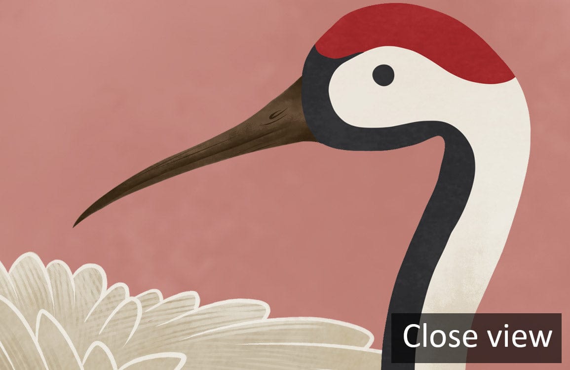 The Cranes on Pink Wallpaper Mural invites a serene elegance into your space, showcasing graceful cranes elegantly poised against a soft pink backdrop. Detailed illustrations of the birds, with delicate feathers and poised necks, lend an air of sophistication. The muted pink complements the refined depiction of the cranes, making it a perfect choice for a chic living area or a serene bedroom sanctuary.