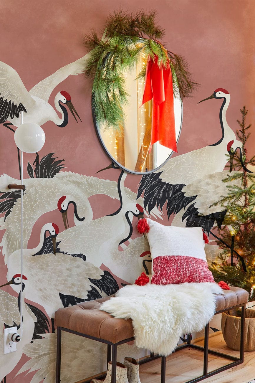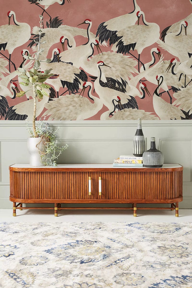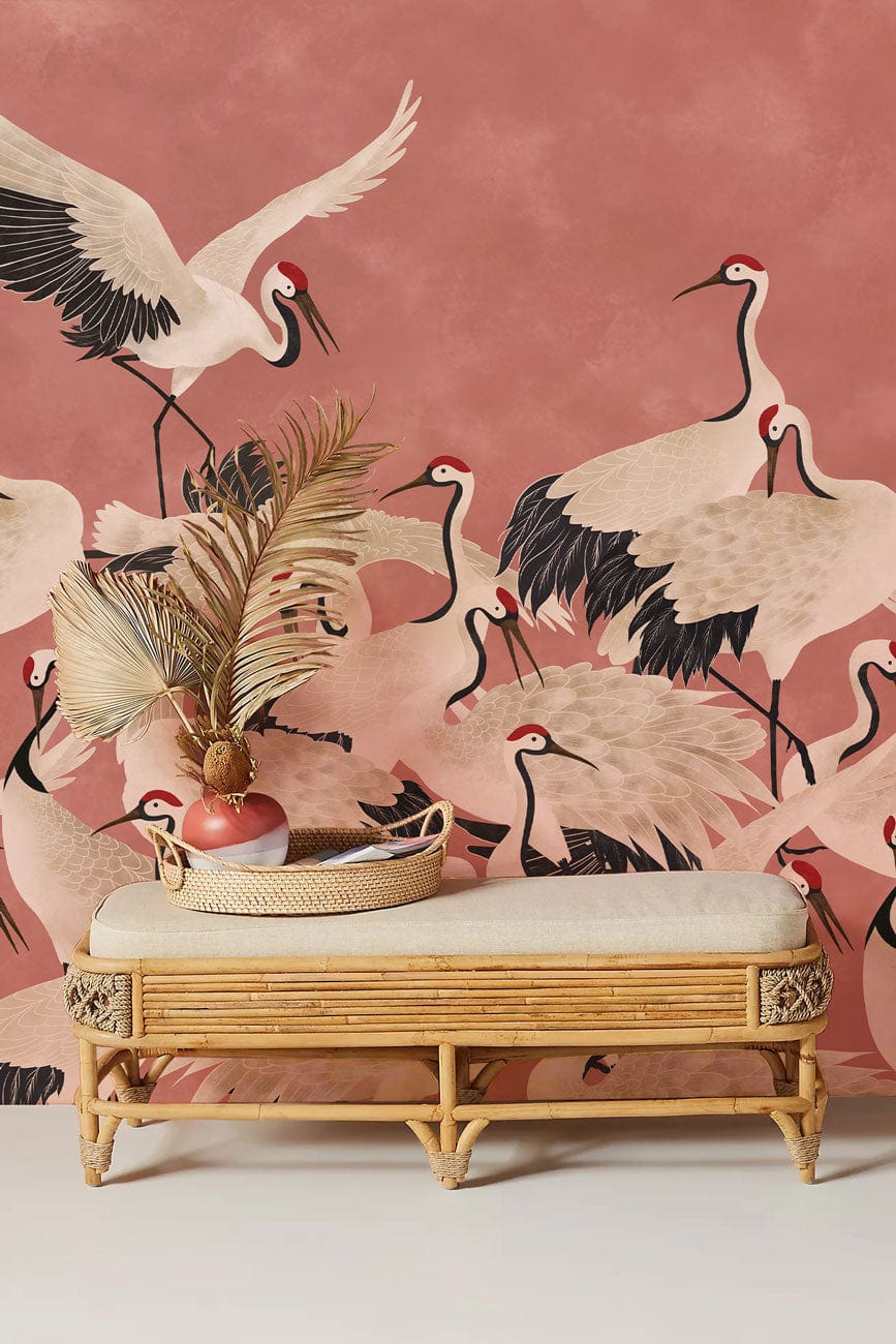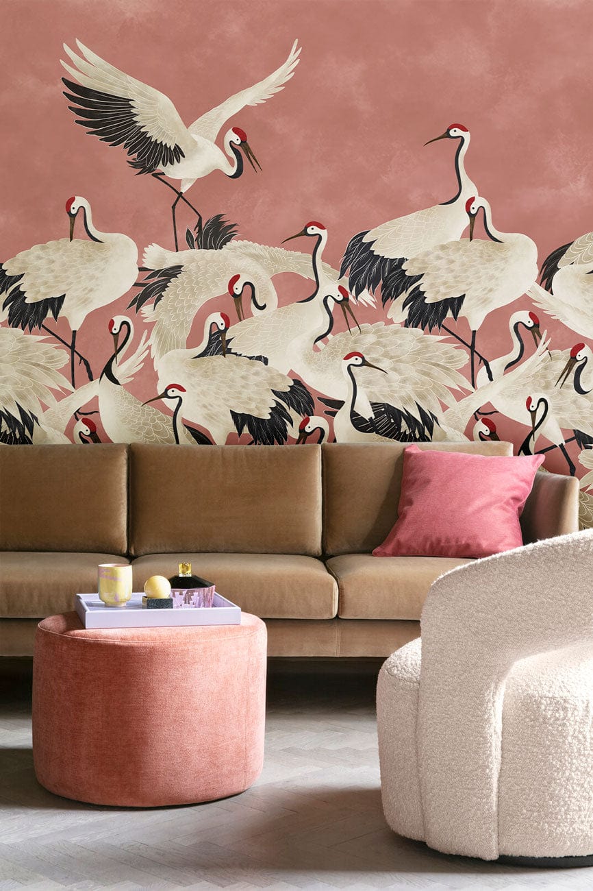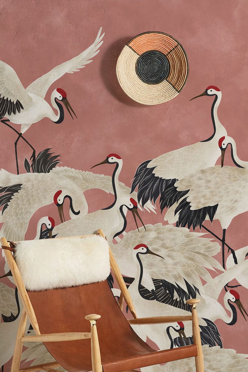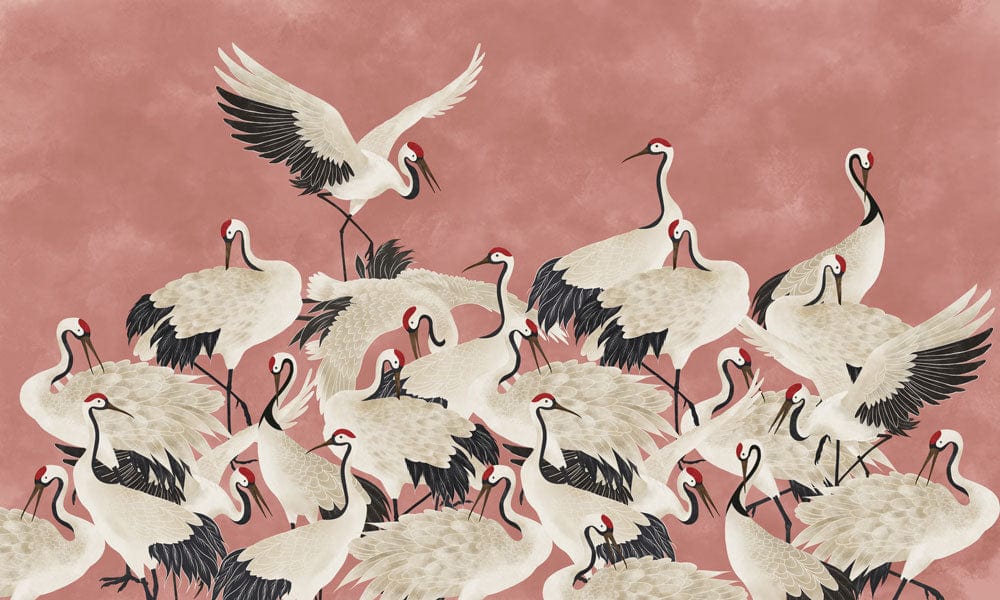 Cranes on Pink Wallpaper Mural