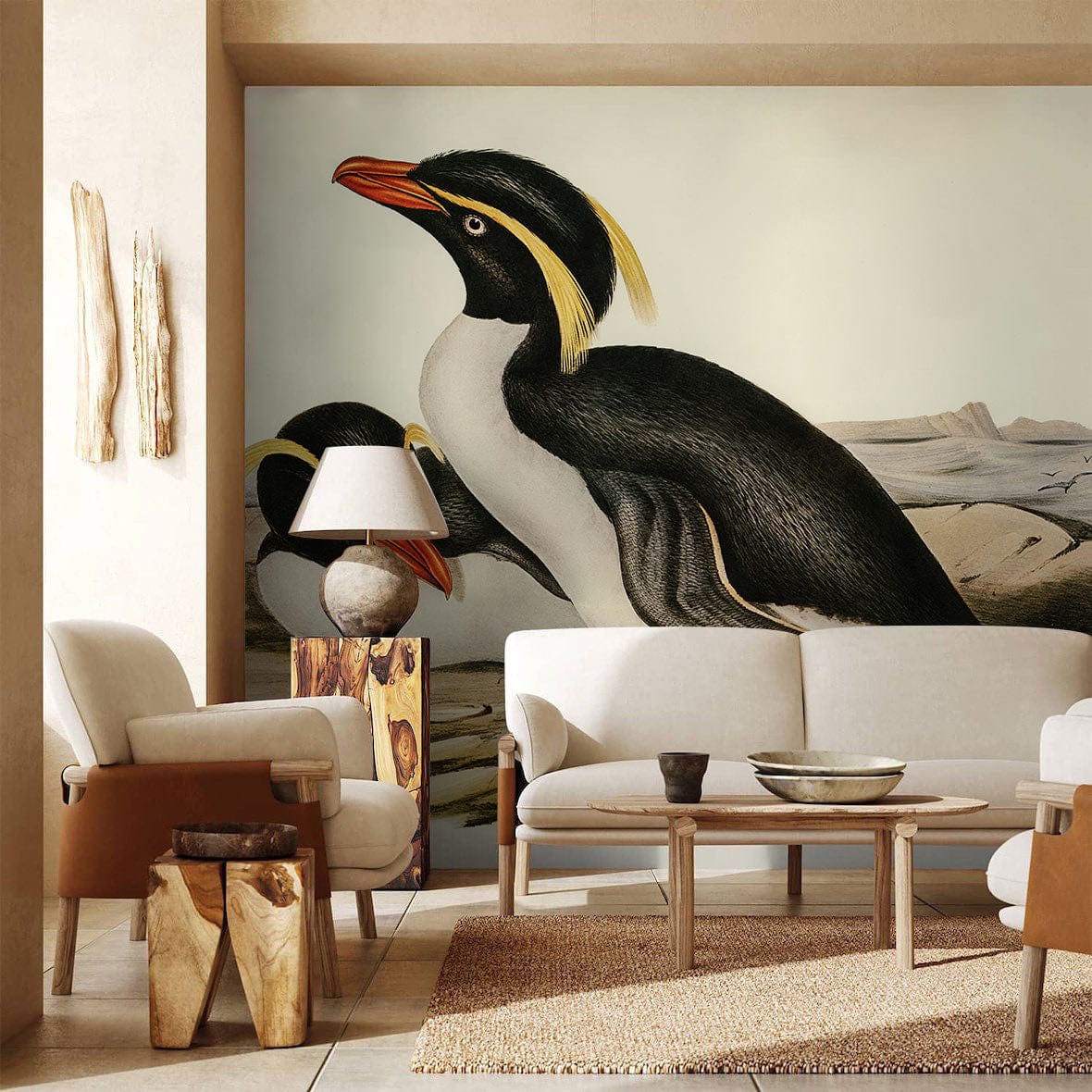 Immerse your space in the tranquil elegance of the Crested Penguin Wallpaper Mural, where precise illustrations capture the graceful poise of these majestic birds. The rich textures bring the artisanal charm of nature indoors, infusing your space with a timeless sense of serenity. With its detailed artistry, this mural harmoniously complements various aesthetics, from traditional to contemporary settings.