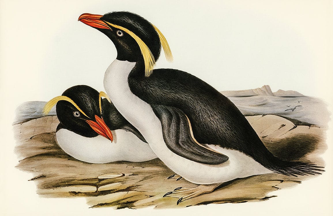Welcome to our famous painting series wallpaper mural. This Cested Penguin was illustrated by Elizabeth Gould. With black, a bit yellow and brown mixed, this mural creates a serious yet calm feeling,which gives the space a different atmosphere. Its animal pattern looks cute and vivid, at the same time it adds some cool tone that you may enjoy. If you are looking for a unique home decoration, this wallpaper mural is a great option for sticking in your interior.