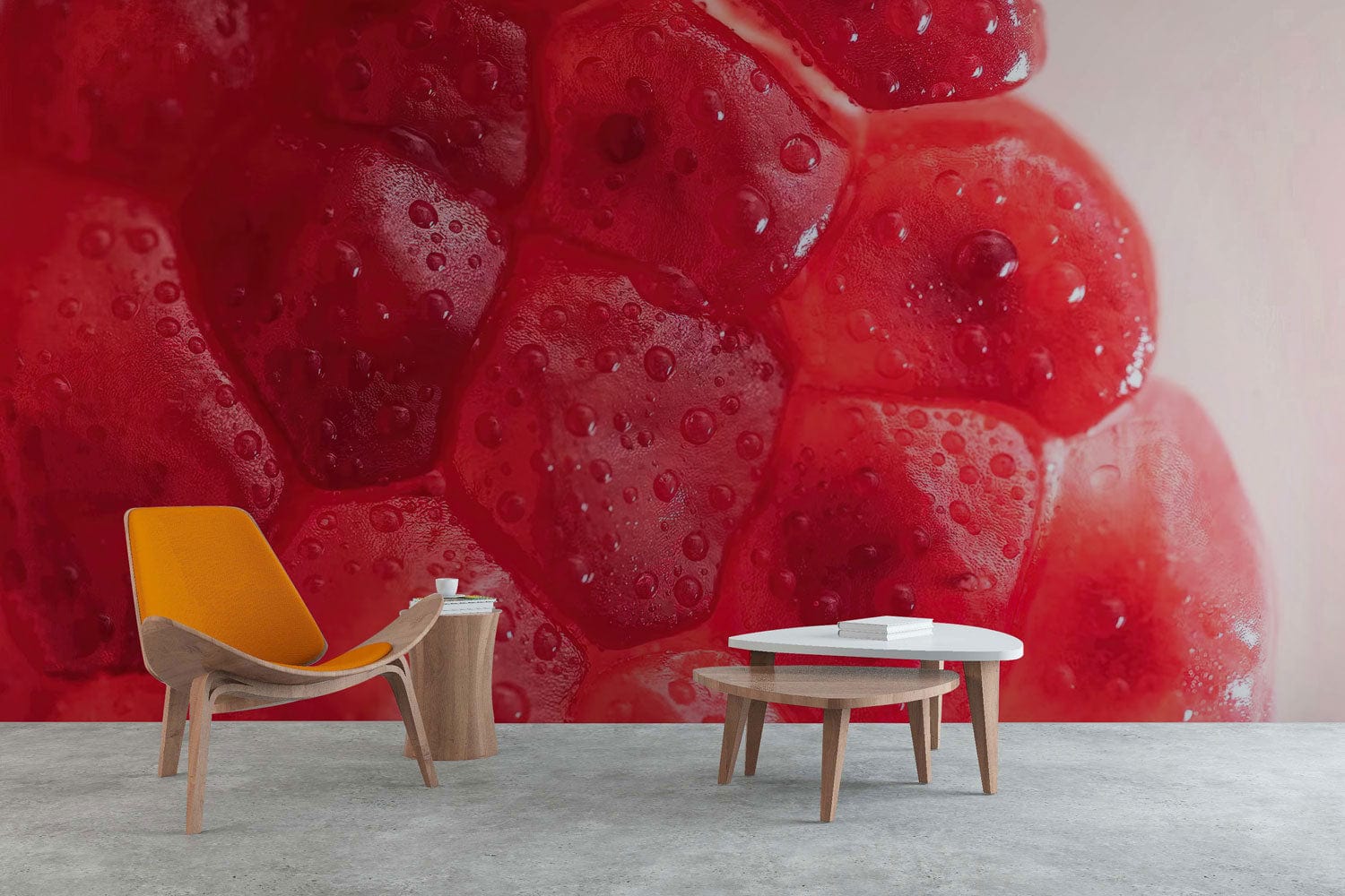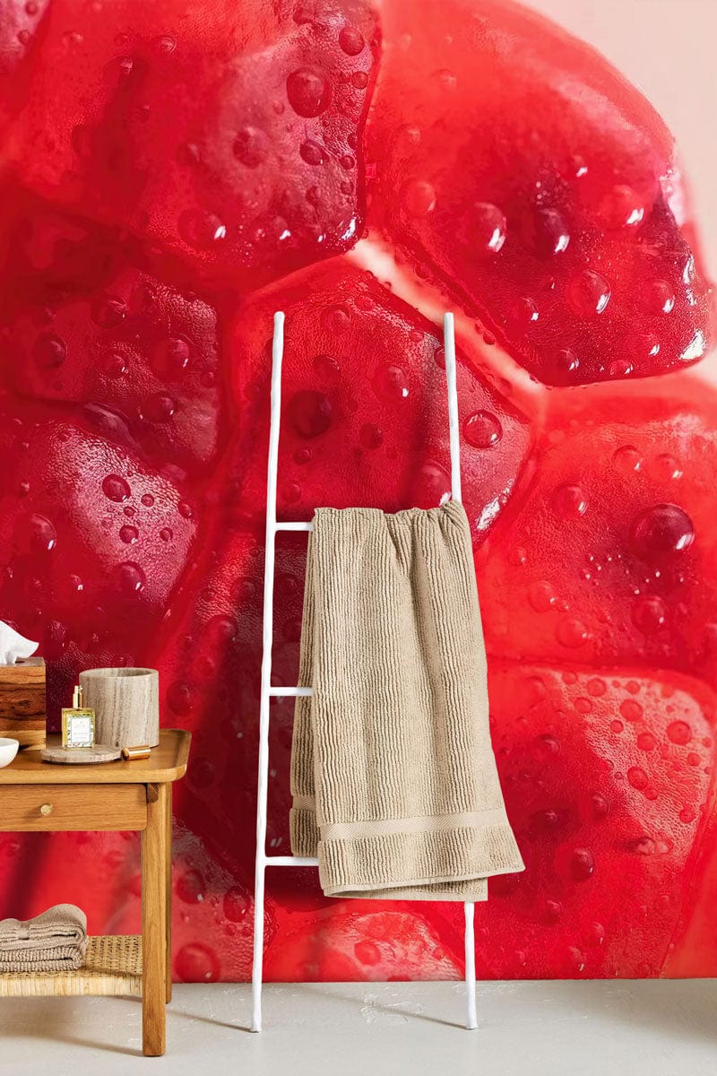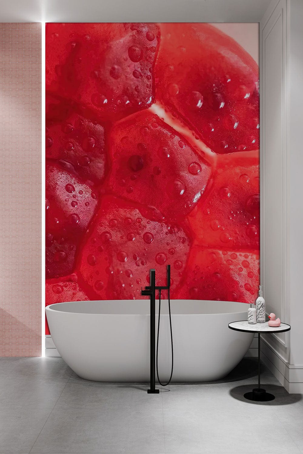 The Crystalline Pomegranate Wallpaper Mural captures nature's artistry with its intricate depiction of pomegranate seeds glistening in rich, ruby hues. This mural brings a sense of elegance and depth to any room, with its lush textures and vibrant palette. Perfect for adding a touch of drama and refinement to both contemporary and classic spaces.