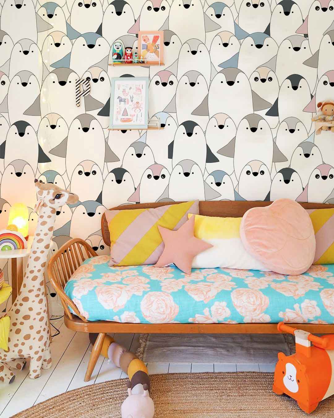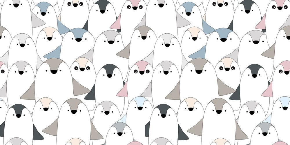 A colourful, playful mural makes a perfect piece of art for any interior. It's entertaining to watch from the opposite side of the room, and it adds a dynamic touch. This Curious Penguins Wallpaper Mural depicts a lovely flock of penguins with wide eyes and stiff postures that are full of questions as they glance at you. This charming animal wallpaper will brighten up your house and make it seem more friendly. This children's mural will provide a soothing touch of fun to your living area, making it ideal for kids' rooms, nurseries, and playrooms.
