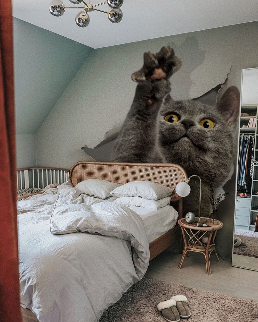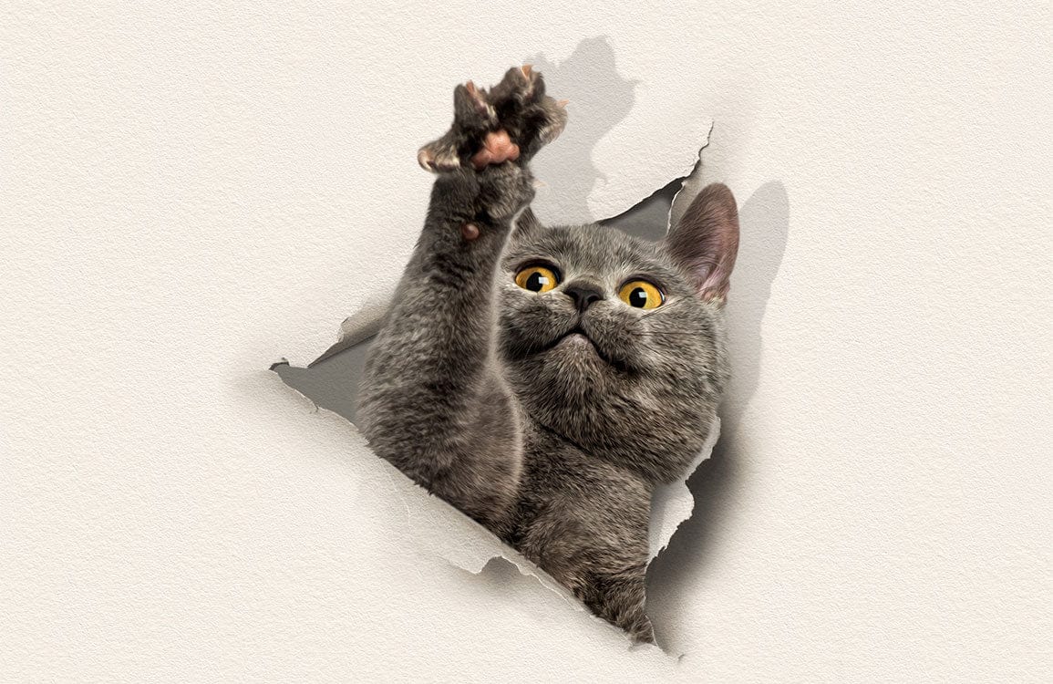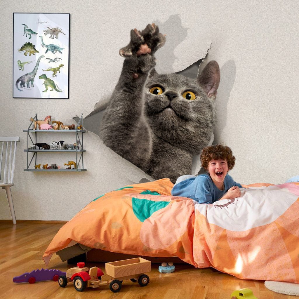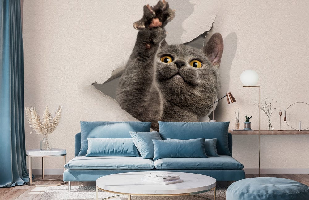 Delight in the whimsical allure of the Stretching Kitty Wallpaper Mural, where a playful grey tabby emerges, creating an enchanting focal point in any space. The detailed textures and lifelike expression add a touch of humour and warmth that captivates and soothes. Perfectly suited for both classic and contemporary interiors, this mural brings a lively charm that echoes sophistication and creativity.