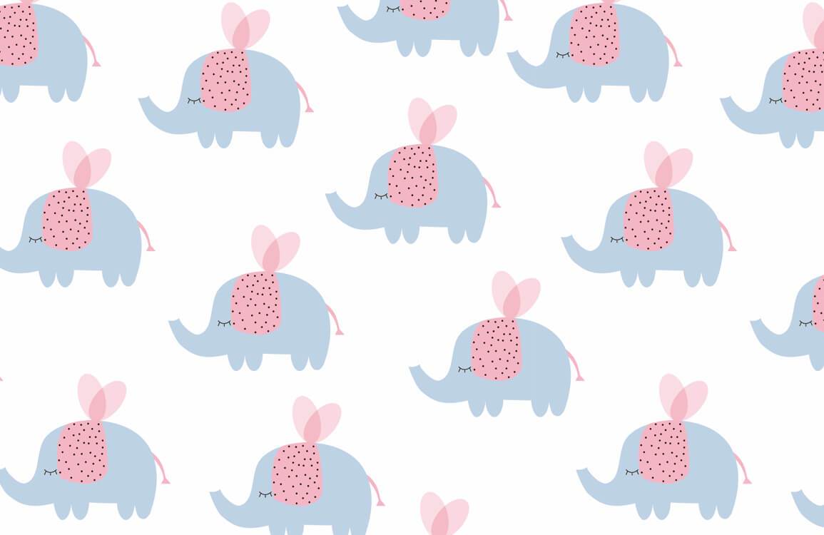 Immerse your space in a whimsical charm with our Elephant Wallpaper Mural, featuring adorable pastel elephants adorned with delicate pink details set against a clean white backdrop. This enchanting design seamlessly infuses a playful yet sophisticated ambience into any room, making it an exquisite choice for nurseries, children's rooms, or cosy corners.