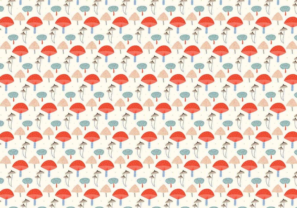 Immerse your space in the charm of nature with this Cute Red Mushrooms Wallpaper Mural. Delicately illustrated mushrooms in vibrant red and serene blue tones dance across a soft ivory background, creating a playful yet sophisticated tapestry. Perfect for adding a touch of whimsy while maintaining elegance, this mural pairs effortlessly with both classic and contemporary interior designs.