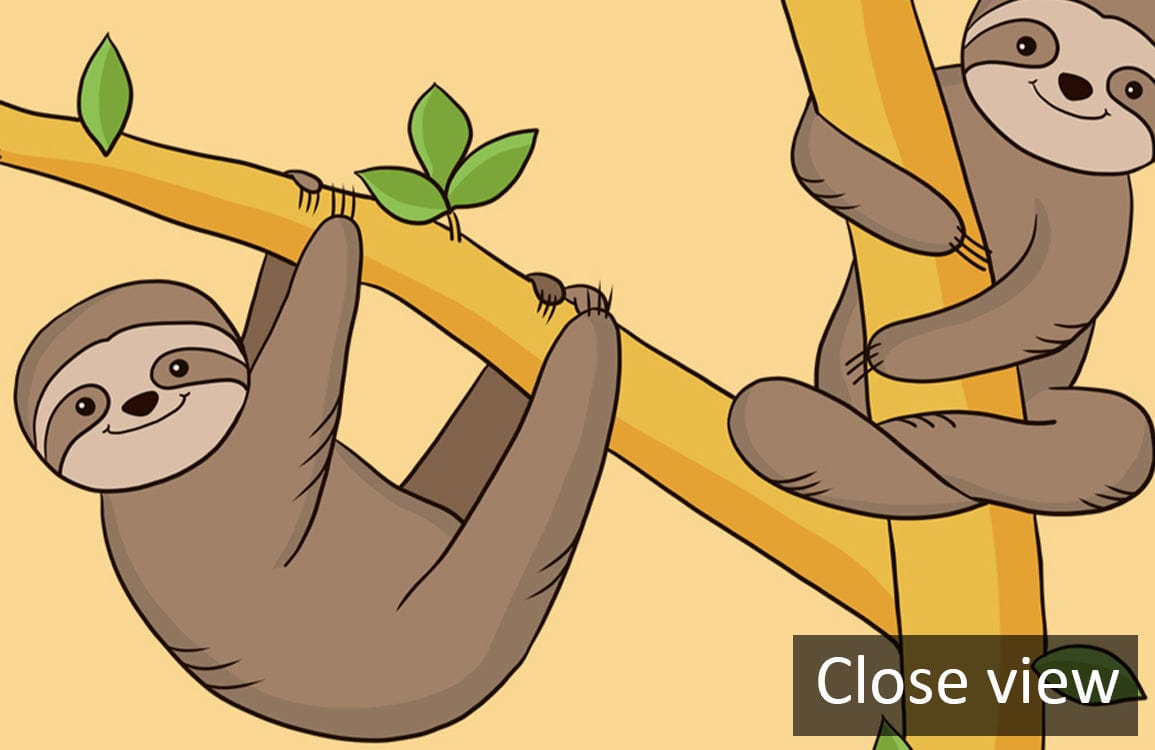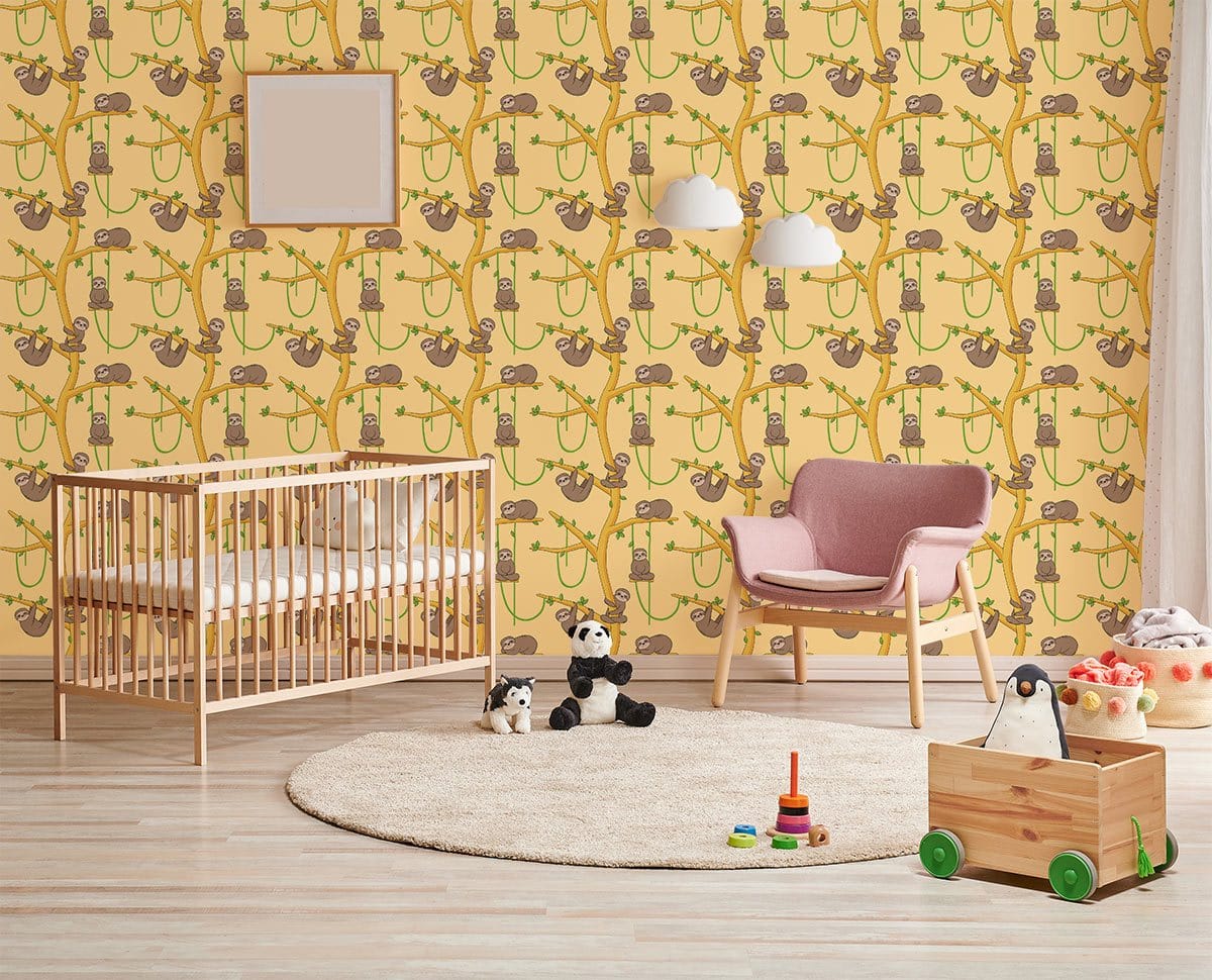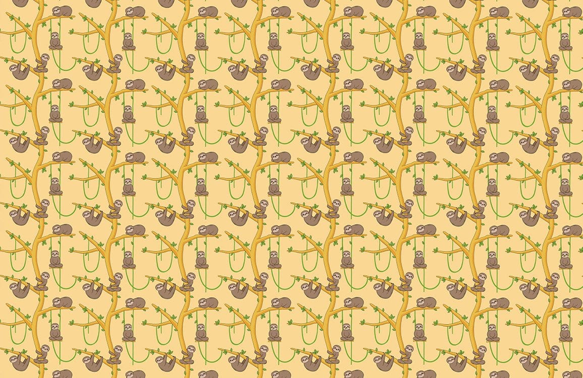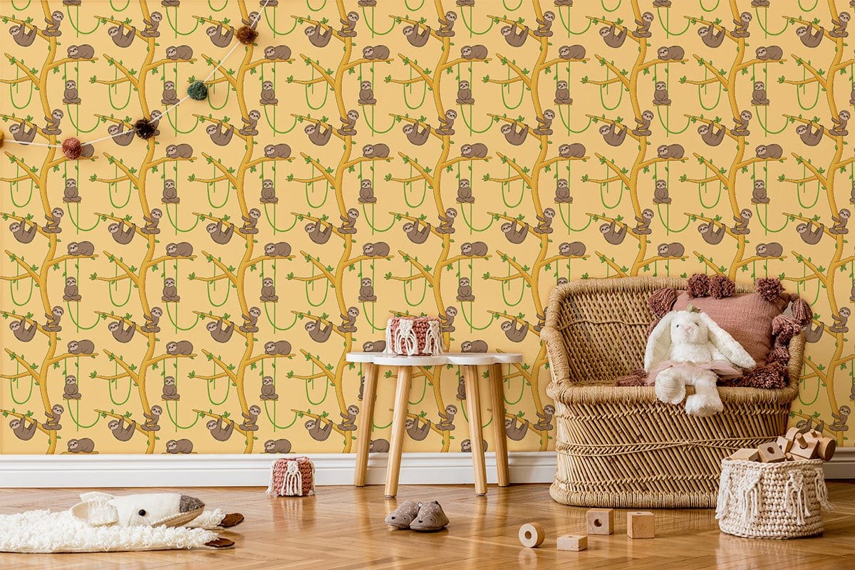 Your children are going to love this cute sloth pattern wallpaper mural! This adorable cartoon sloth print wall mural under pastel yellow background is suitable for all kids room and baby nursery. Place this sloth wall mural to your wall and enjoy the happiness and joy it brings to you and your children.