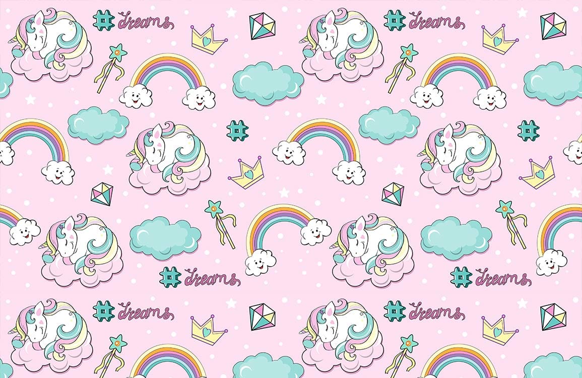 Unleash your mind and examine our splendid mural wallpaper full of beautiful and meaningful resemblance. If your kid is a girl, she will definitely love this colourful wallpaper. It is full of different drawings, a mixture of rainbows, unicorns, and clouds. Unicorn, these days, became girl鈥檚 favorite drawing as it resembles joy, happiness, and innocence. As also the rainbow gives the kid enjoyment and excitement when they see it. This aesthetic pink mural wallpaper will perfectly fit in a playroom or a clinic that will set another different joyful mood. Don鈥檛 miss our unique mural wallpaper.