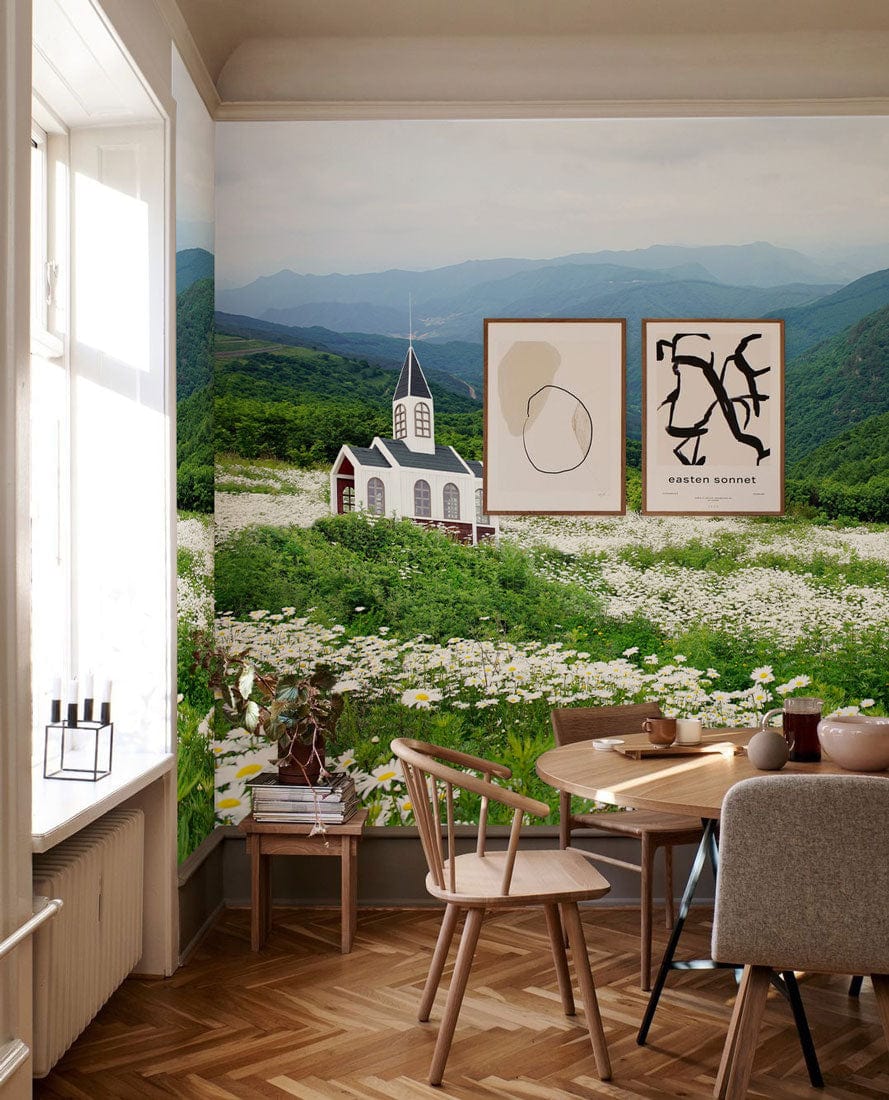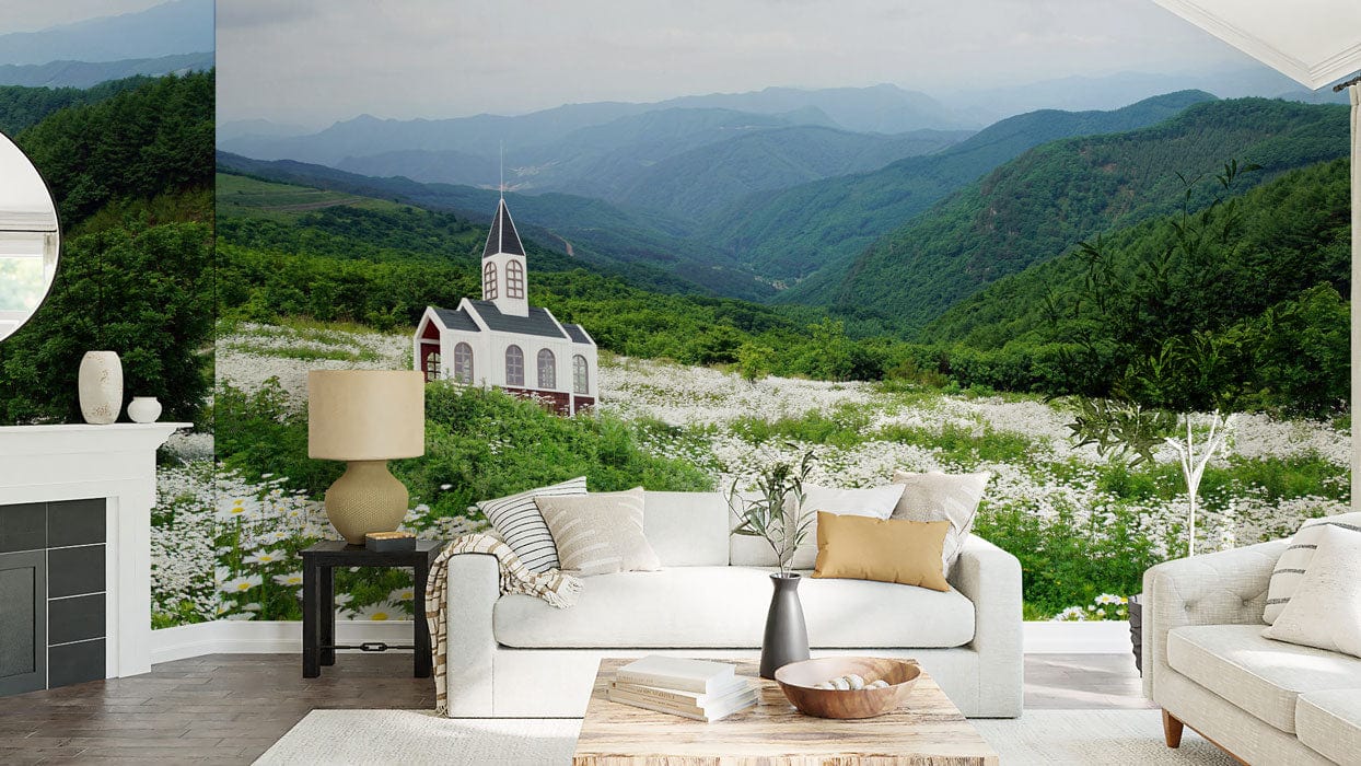 Daisy Field on Mountain Wallpaper Mural