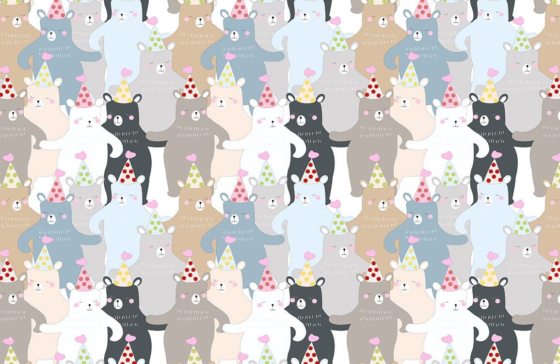 Discover the whimsical charm of the Dancing Bears Wallpaper Mural, where playful bears don colourful party hats against a soft backdrop. This intricately designed mural brings a touch of joy and wonder, effortlessly fitting into both children's spaces and sophisticated settings with its delicate patterns and subtle hues.
