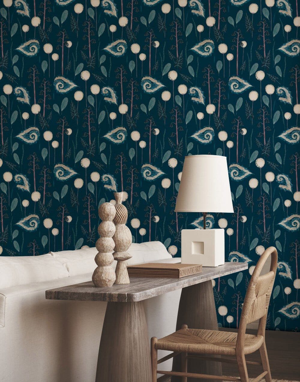 Experience a touch of elegance with the Dark Blue Petals Wallpaper Mural, where rhythmic floral motifs dance across a deep blue canvas. Delicate patterns and subtle contrasts create captivating depth, offering a sophisticated aesthetic suitable for both traditional and contemporary interiors. The intricate design invites a serene ambience, making it a sublime choice for those seeking a timeless yet modern flair.