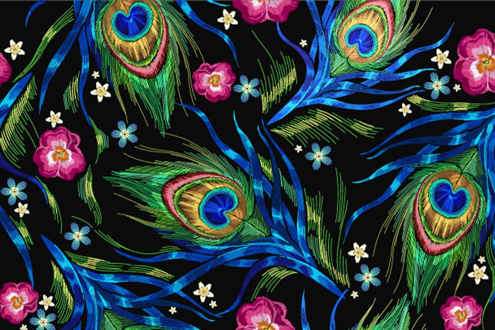 Dark Embroidery Peacock Feather Wallpaper Mural