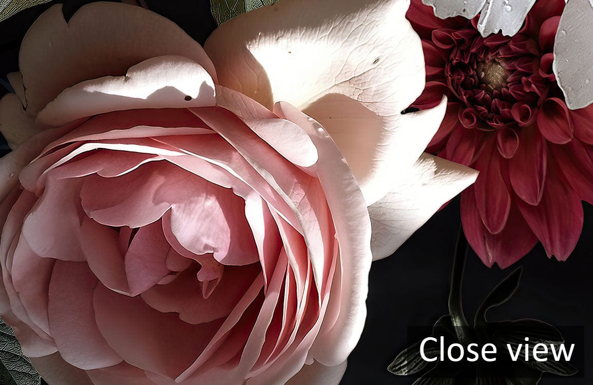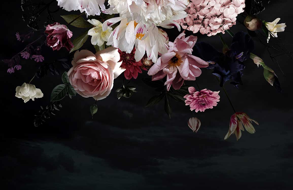 Create an elegant space in your home with our flower wallpaper mural. This beautiful flower bouquet in dark tone will surely add a touch of calm and elegant to your home. It will look amazing in your bedroom, dining room and hallway. This wall mural will also perfectly match your furniture and any other home decorations.