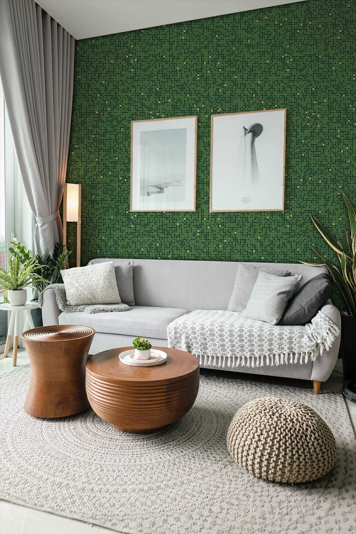 Immerse your space in the rich tapestry of a dark green mosaic wallpaper mural, where intricate patterns and textured tones evoke both elegance and serenity. This design interlaces deep forest hues with subtle, sophisticated motifs, making it an ideal backdrop for cultivating warmth and depth in any room. Its timeless appeal resonates with both classic and contemporary sensibilities, perfectly suited for those who appreciate refined artistry in their décor.