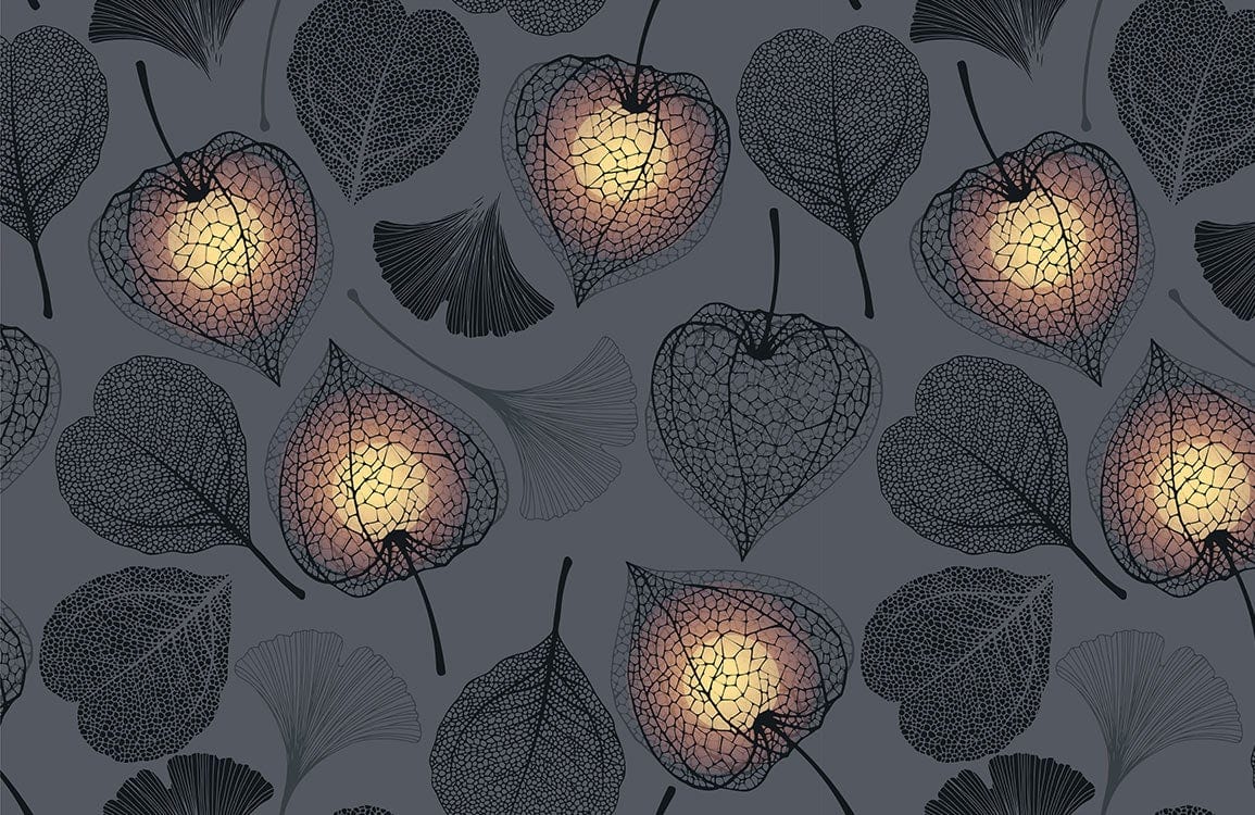 Embrace the elegance of nature with the Dark Leaf Wallpaper Mural, showcasing intricate leaf patterns delicately illuminated against a muted backdrop. The interplay of organic shapes with soft luminous centres offers an enchanting aura, making it a sophisticated addition to any setting. This mural's exquisite detailing provides a captivating visual and tactile experience, effortlessly fitting into both contemporary and classic spaces.
