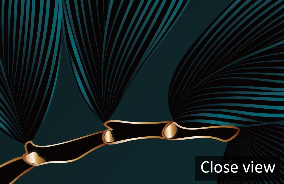 The Dark Lily Wallpaper Mural elegantly showcases a fusion of graceful lilies etched in striking copper against a deep teal backdrop. Its intricate detailing and lustrous textures evoke a sense of opulence, seamlessly blending with a range of interiors. From vintage charm to modern sophistication, this mural adds an artistic allure, making it an impeccable choice for both intimate and luxurious settings.