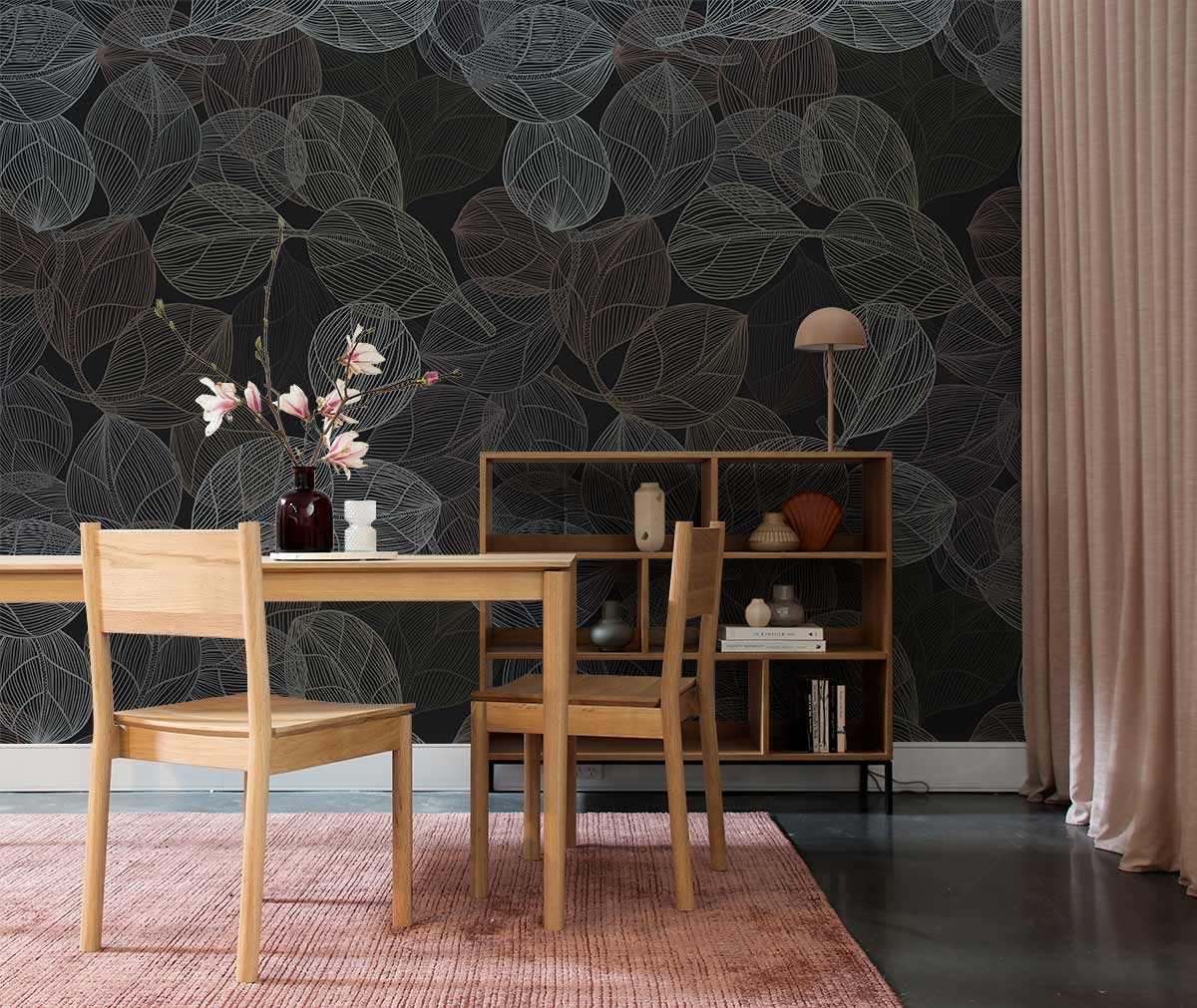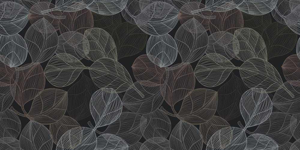 Dark Line Leaves Wallpaper Mural