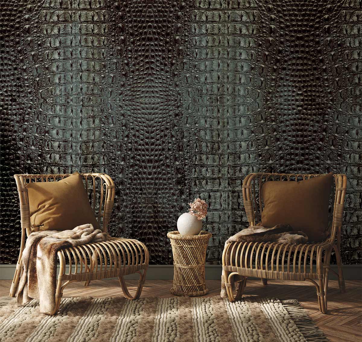 Introduce a touch of luxury and intrigue to your space with this Dark Snake Skin Wallpaper Mural. The meticulous design showcases an exquisite pattern of scales, capturing the essence of refined elegance. Its textured surface offers a tactile experience, adding depth and dimension to any wall. This captivating mural seamlessly integrates into modern and eclectic interiors, infusing them with a sense of timeless sophistication.