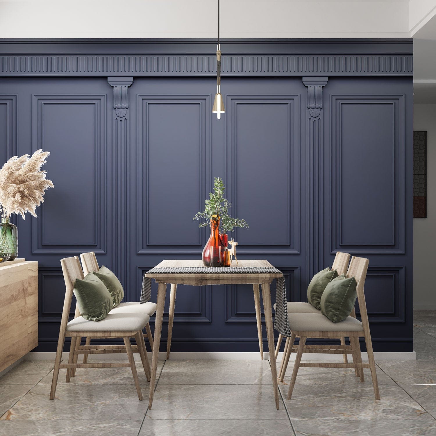 Immerse your space in the rich allure of dark wood panels, capturing the elegance of timeless craftsmanship. Each panel exudes depth, with intricate moulding that draws the eye and elevates any room into a sophisticated retreat. Perfectly suitable for a variety of interiors, this mural offers a refined backdrop that resonates with both classic and contemporary styles.