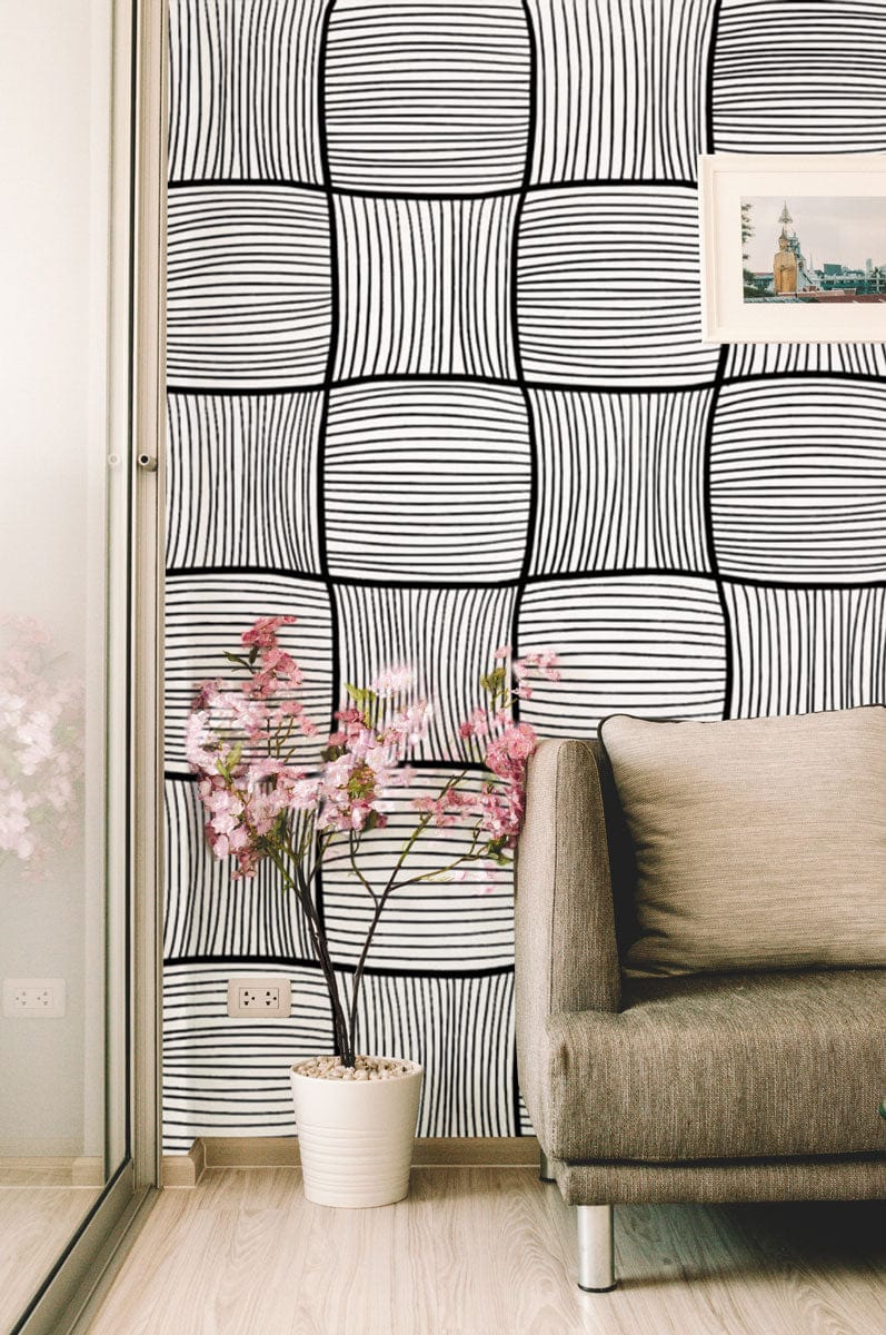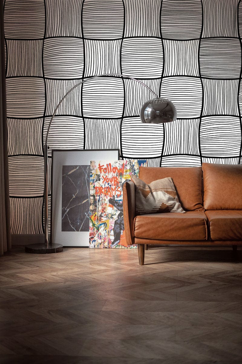 The Dazzle Squares Wallpaper Mural captivates with its intricate grid of fluid, hand-drawn lines, creating an illusion of depth and movement. Its monochromatic palette effortlessly complements a variety of interior styles, adding an air of sophistication and timeless artistry. Perfectly suited for both contemporary and classic spaces, this mural is an exquisite backdrop that invites aesthetic balance and visual intrigue.