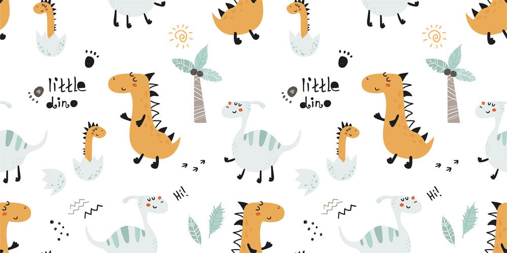 Our Dinosaur Baby Wallpaper Mural is a fun and fresh way to brighten up a baby's room. The happy little dinosaur and palm tree design will delight children of all ages while helping to stimulate their imagination. This adorable dinosaur wall mural is fun and friendly and can add character to any space. Bring a smile to your face and make your little one happy with a lovely wallpaper mural covered in vivid colours!
