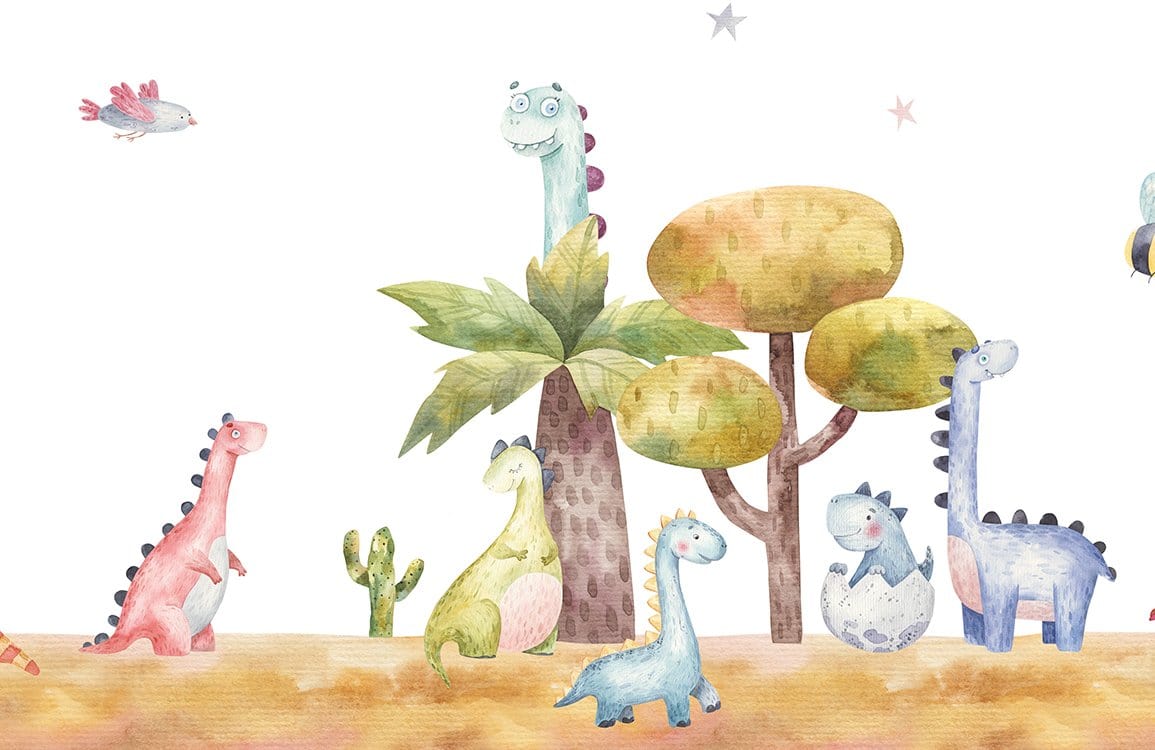 Immerse your space in the whimsical charm of our Dinosaur Park Wallpaper Mural, where playful prehistoric creatures roam amidst a serene landscape. Meticulously illustrated, the mural combines a delicate balance of soft pastels with earthy tones, creating a soothing yet captivating visual narrative. Its artistic sketch-like quality and vivid textures offer an enchanting focal point that seamlessly complements both contemporary and classic interiors.