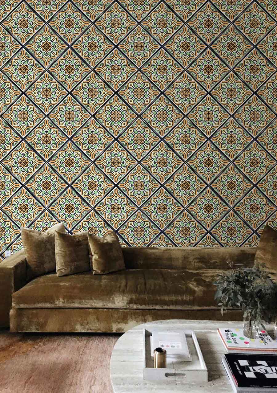 The Dirty Green Vectors Wallpaper Mural exudes a sophisticated charm with its intricate geometric patterns, weaving a tapestry of symmetry and elegance. The interplay of rich hues and detailed motifs creates a visual intrigue, perfect for curating a refined atmosphere in any room. This mural's artistic complexity and nuanced texture lend a timeless appeal, making it an exquisite addition to eclectic and contemporary interiors alike.