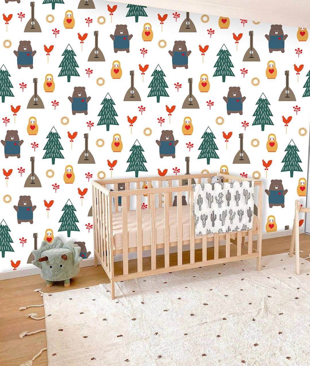This Dolls Wallpaper Mural encapsulates a whimsical yet refined aesthetic, featuring charming motifs of dolls, bears, and trees. Its balanced interplay of vivid and muted tones creates an enchanting atmosphere, perfect for both traditional and contemporary spaces. The intricately detailed illustrations bring a sense of storytelling and nostalgia, making it a captivating feature in any room.
