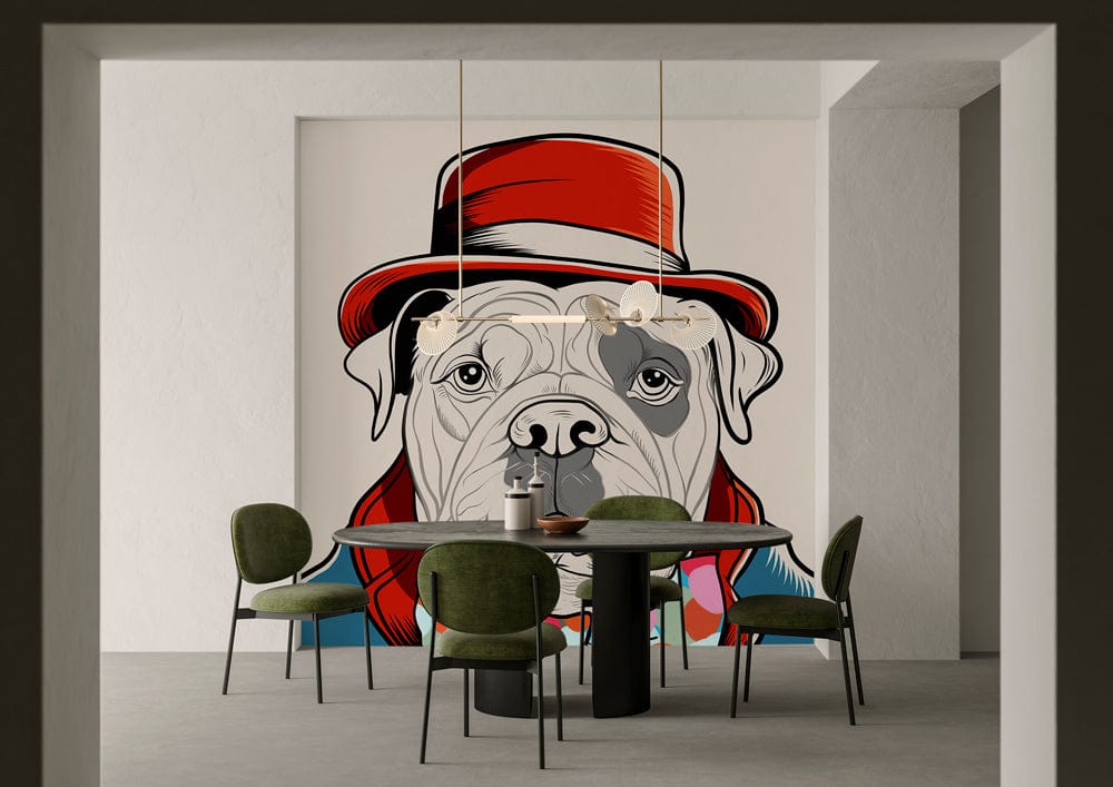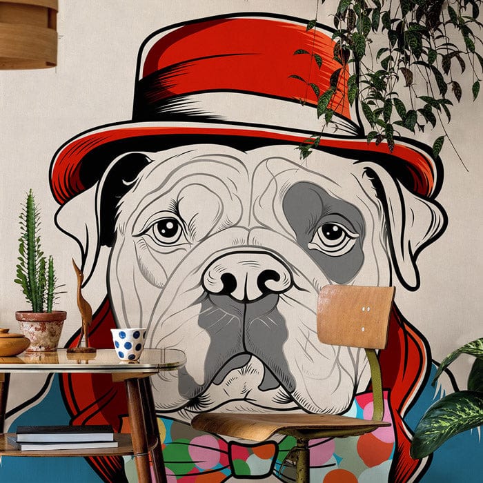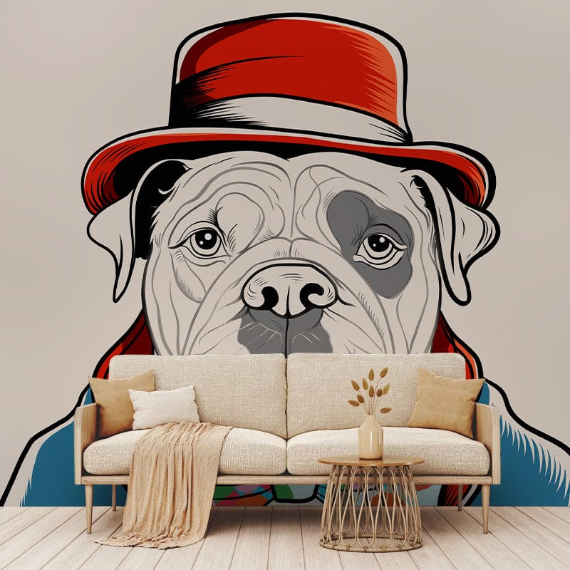 The Doodle Dog Wallpaper Mural captures the whimsical charm of artistic illustration, featuring a bold portrayal of a dog in a striking red hat. The intricate line work and lively design bring a sophisticated yet playful ambience to any interior space, making it a versatile piece for both contemporary and traditional settings. This mural's vibrant character offers a unique focal point, perfectly balancing artistic flair with timeless appeal.