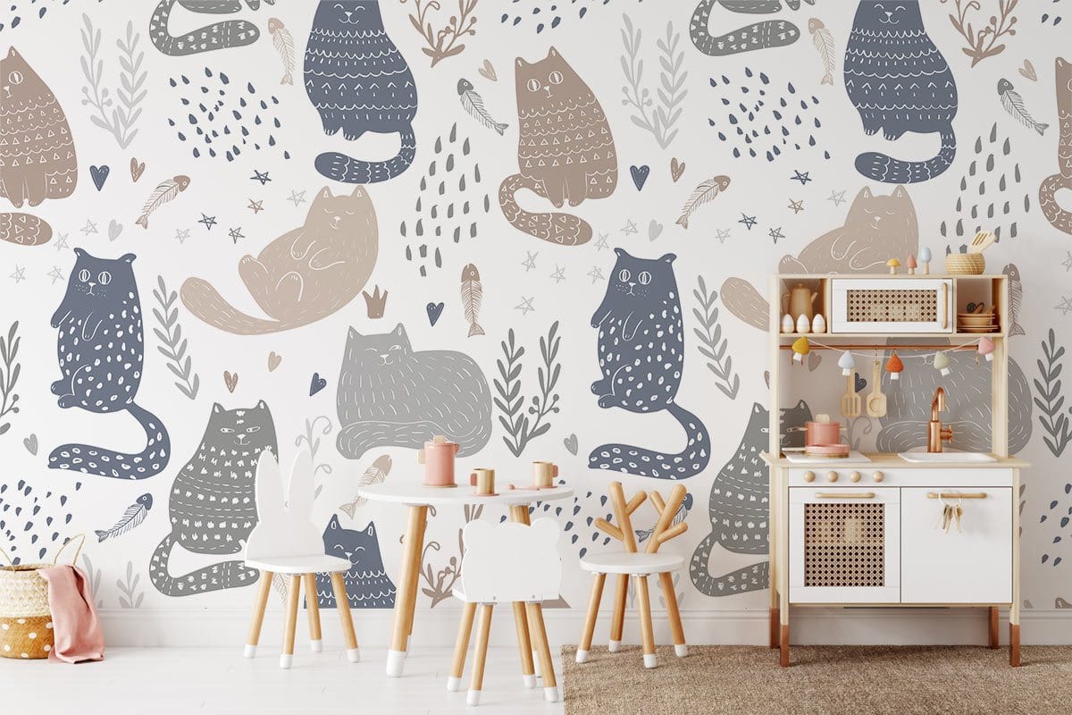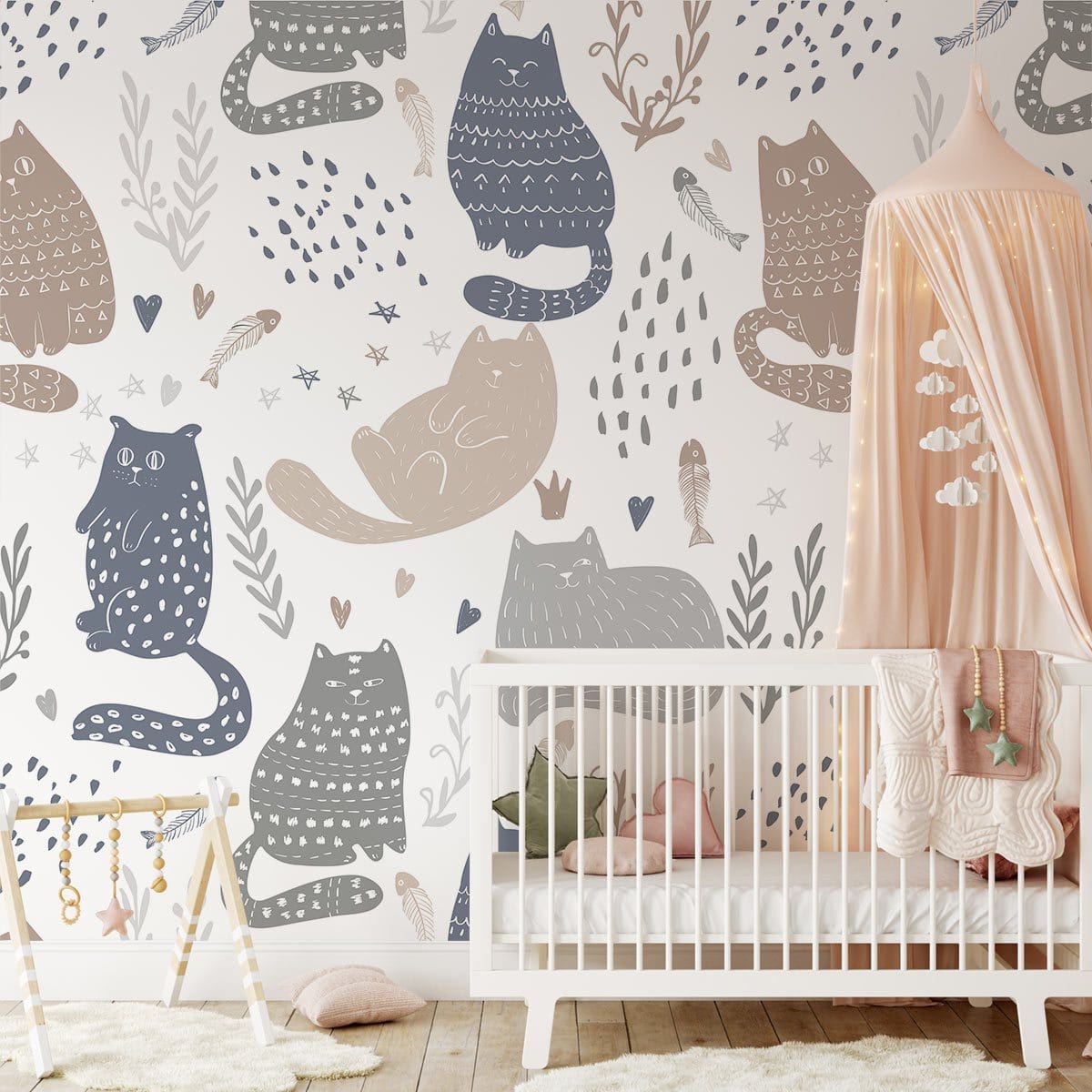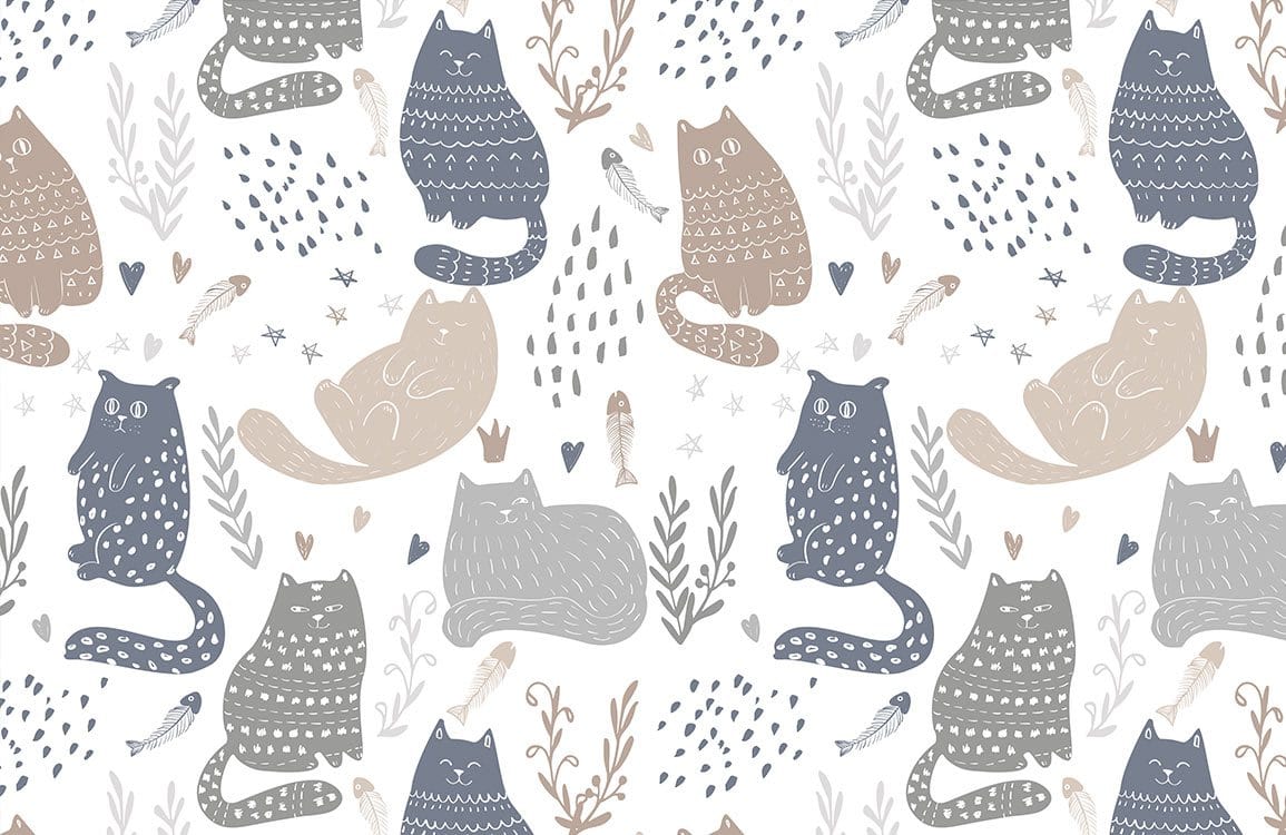 If you or your kids love cats, then this lovely cats wallpaper mural will be a perfect choice for your interiors. This adorable cats pattern with random doodles in soft pastel tones wall mural is suitable for all your bedroom or kids/nursery rooms. Place this cartoon cat wall mural to your wall and enjoy the happiness and joy it brings to you and your children.