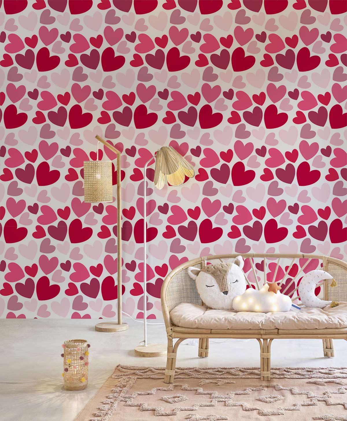 Double Love Mural Wallpaper is a subtle, feminine, stylish look that will make your home feel like a Fairytale. This wallpaper mural is perfect for teen bedrooms and kids' rooms as it will wake you up early in the morning with the sun shining brightly through its lovely pink heart pattern scattered over a plain white background. This mural will create a youthful and classic style in your home and an easy way to add a pop of colour to your walls, especially for small or large bedrooms.