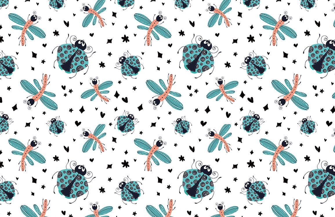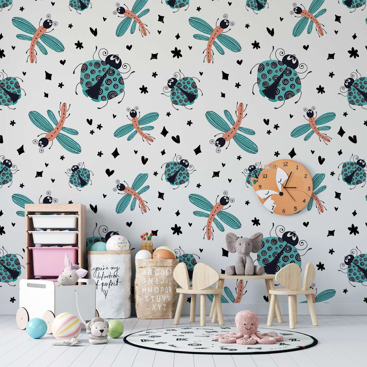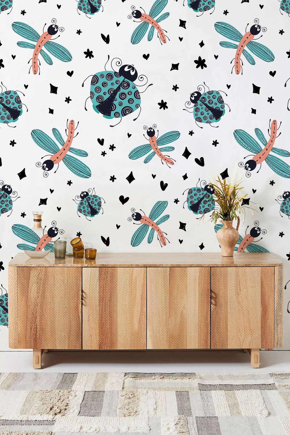 Bring a spectacular vibe to your space with this eye-catching dragonfly & insects wallpaper mural. The design creates repeated hand-painted dragonfly & insects pattern wall mural which will impress everyone who sees it. Use it as a feature wall in your bedroom, living room or kids room and pair it with white or pastel colour furniture.
