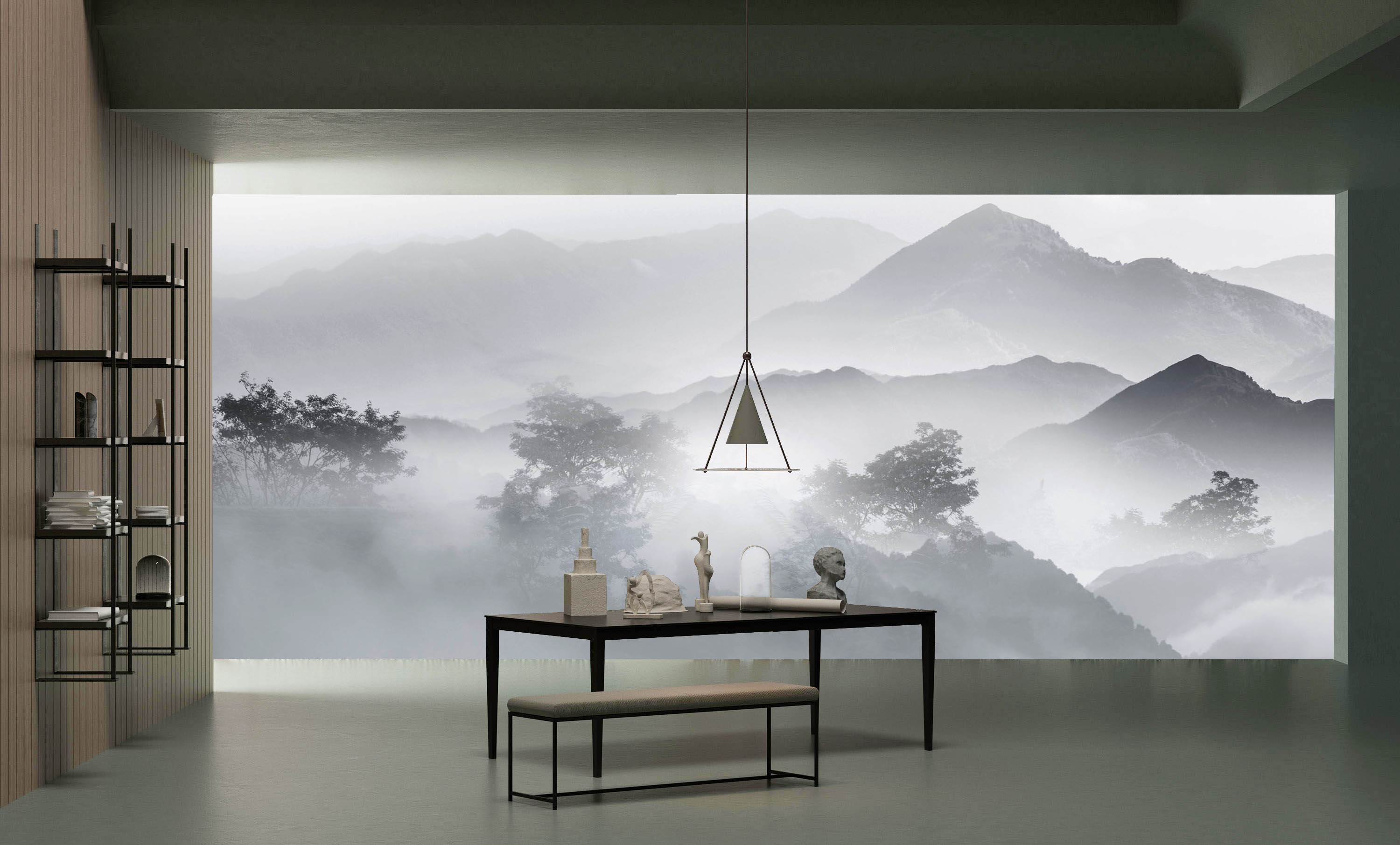 Dreamland Wallpaper Mural captures the ethereal beauty of mist-clad mountains, evoking a serene and mystical atmosphere. The delicate interplay of light and shadow creates a sense of depth, while the soft hues invite tranquillity into any space, blending effortlessly with diverse interior styles.