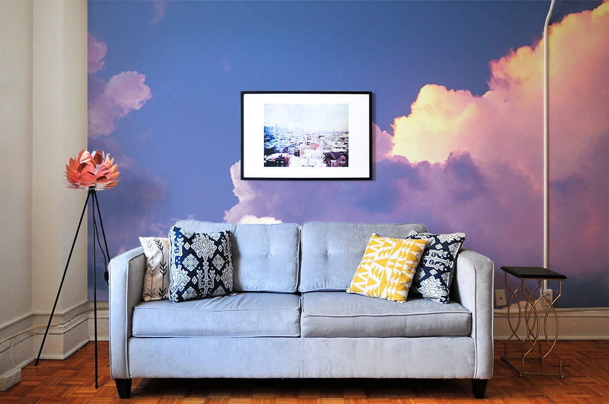 This wallpaper will take your breath away! Create a dreamy pop of colour with our Dreamy Clouds Mural Wallpaper. The design features a bright colour palette that helps give your wall a calming effect, while the soft pastel hues are sure to brighten up any space in your home. Intricate clouds float by to give a warm and light feel to your area. Its light and airy pattern adds a touch of whimsy and charm that is perfect for any panel. Count it to your own space for an amazing look, or give it as a gift to your loved ones!