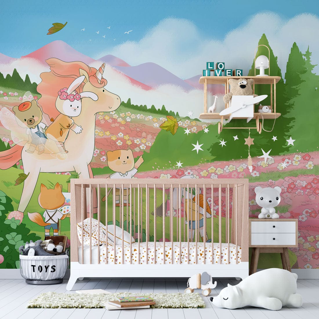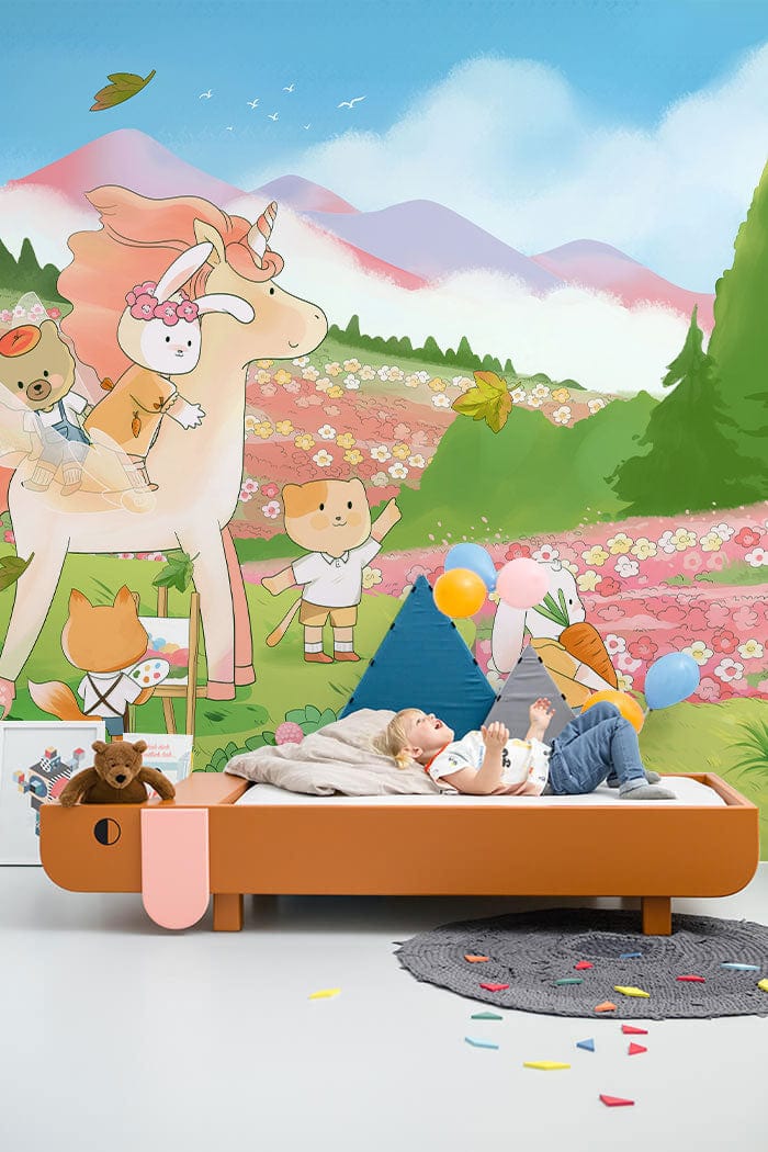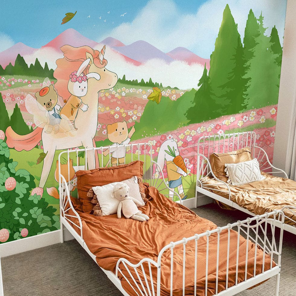 This Dreamy Forest Wallpaper Mural invites whimsical charm into your space with enchanting scenes of playful animals amongst lush greenery and blossoms. Its exquisite detail and soft textures create a serene, magical landscape that captivates and inspires. Ideal for a child's bedroom or nursery, this mural's delicate artistry evokes both sophistication and a timeless allure, ensuring a perfect fit for those seeking an imaginative yet elegant setting.