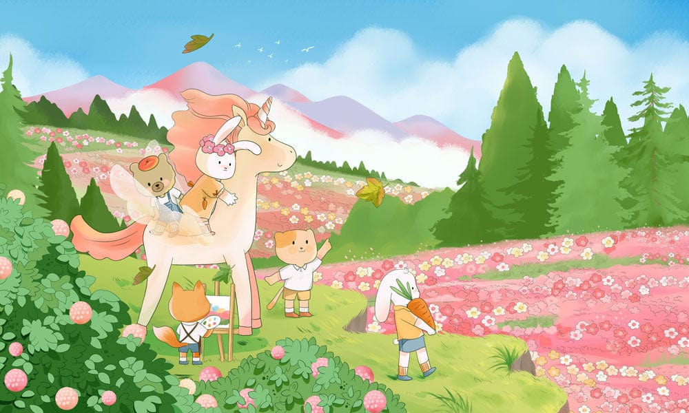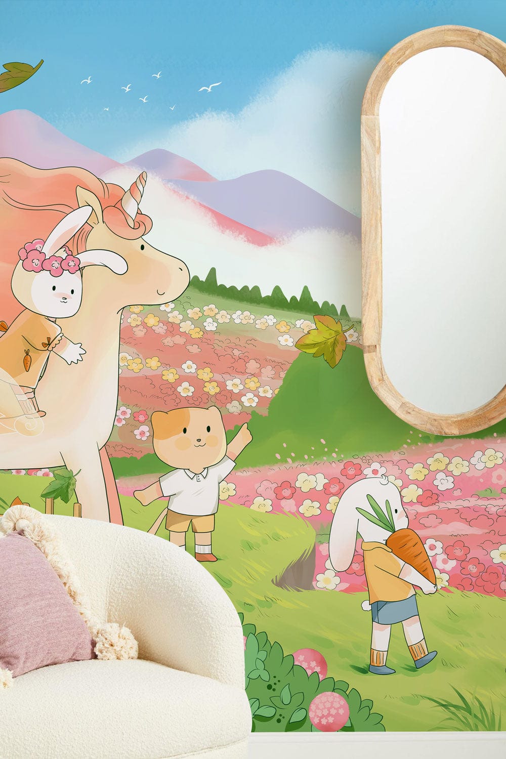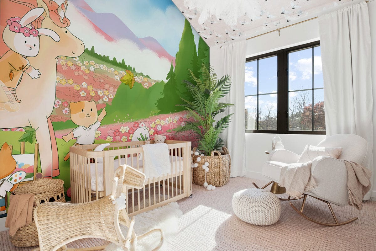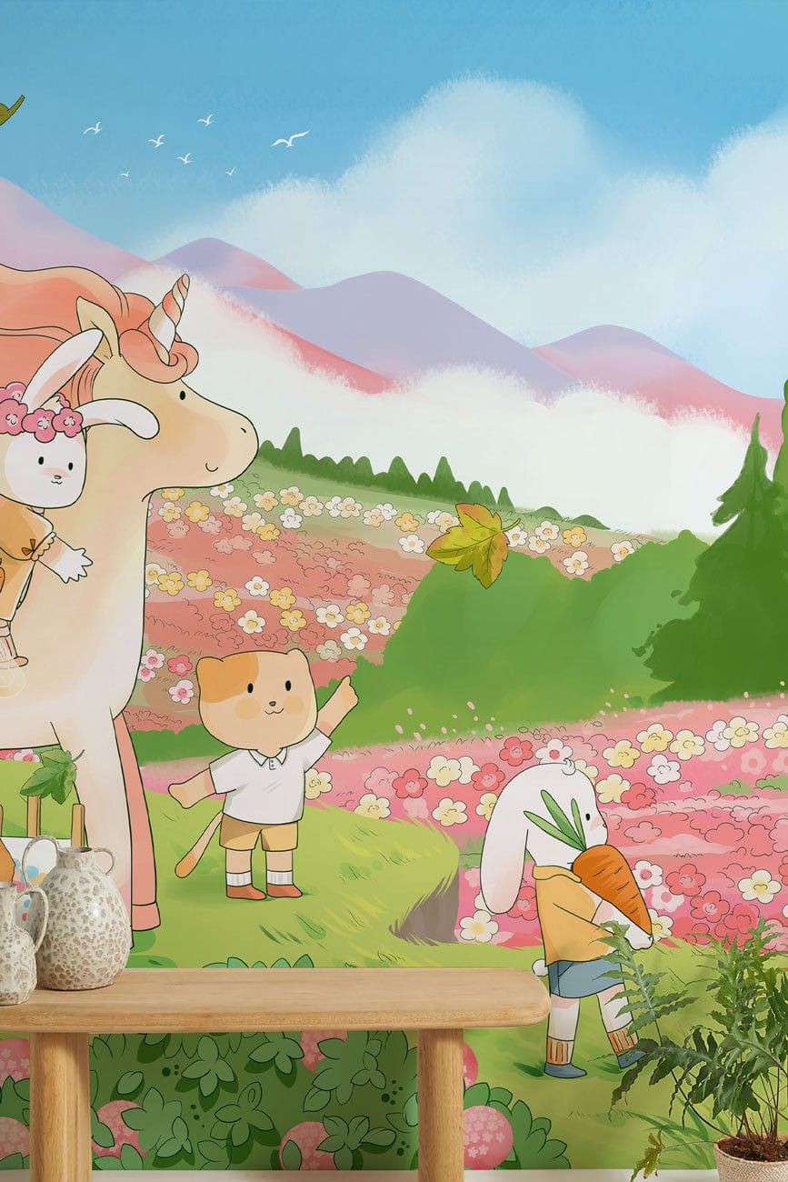 This Dreamy Forest Wallpaper Mural invites whimsical charm into your space with enchanting scenes of playful animals amongst lush greenery and blossoms. Its exquisite detail and soft textures create a serene, magical landscape that captivates and inspires. Ideal for a child's bedroom or nursery, this mural's delicate artistry evokes both sophistication and a timeless allure, ensuring a perfect fit for those seeking an imaginative yet elegant setting.