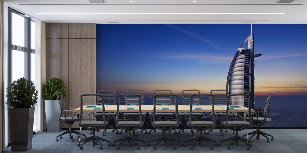 Immerse yourself in the captivating allure of the Dubai Gulf Wallpaper Mural, showcasing the iconic silhouette of the Burj Al Arab against a stunning twilight horizon. Its intricate design and harmonious interplay of architectural elegance with natural beauty create a luxurious ambience. The dusk sky, blending into the gentle waves, invites a sense of serenity and grandeur, making it a quintessential piece for sophisticated interiors.