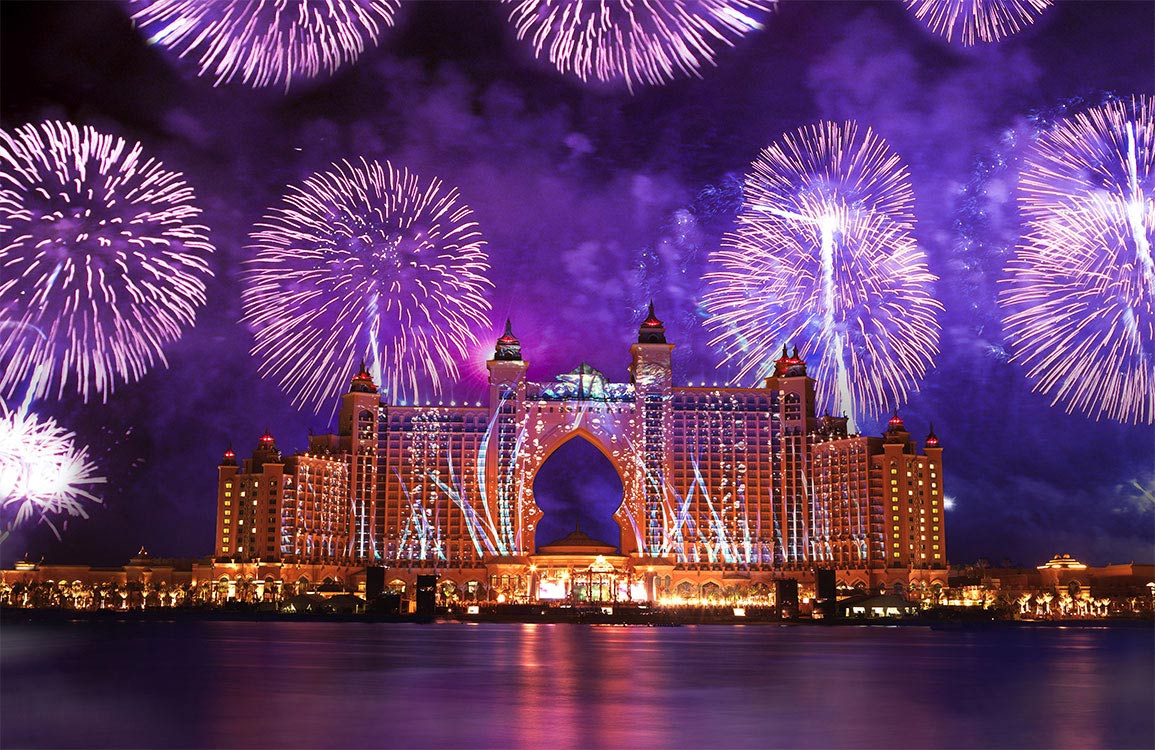 Create a vibrant accent wall with our Dubai Palace Wallpaper Mural, an elegant design featuring fireworks over the skyline. From its modern exteriors to the stunning fireworks display that will leave you completely mesmerized, this wallpaper offers you a spectacular view of the palace from dusk to dawn. With the colourful design and bold layout, this mural adds a sophisticated touch to any space and is arranged in order to make the scene more prominent and interesting.