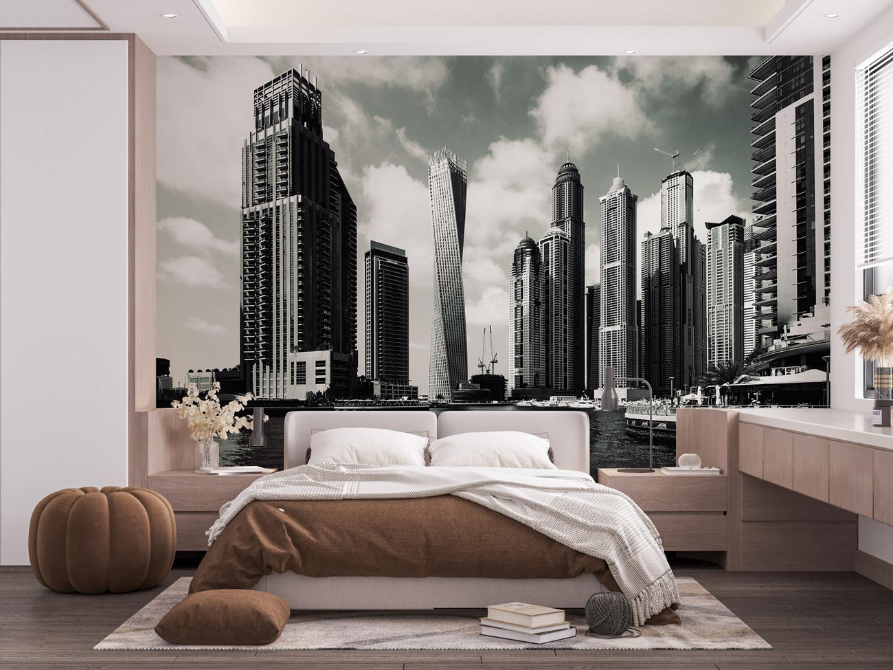 Immerse your space in the sophisticated essence of Dubai's iconic skyline with this Riverside Wallpaper Mural. The captivating design captures the grandeur of modern architecture reflected in the serene waters, offering a dramatic and elegant backdrop. Its intricate details and textured finish bring to life the harmonious blend of urban dynamism and tranquil beauty. Perfect for complementing both contemporary and classic interiors, this mural embodies timeless sophistication and artistic allure.