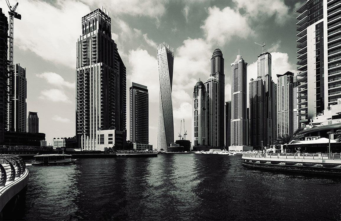 Replace your boring walls with our Dubai Riverside Wallpaper Mural. This mural features the famous sight in Dubai with its striking architecture surrounding the river that flows life into the city. Even in a black and white palette, the magical look from the well-lined view deck will give your living room a soothing and warm atmosphere. You can have the mural wallpaper applied on walls or doors in your house as it has a self-adhesive backing for easy application. This stunning wallpaper is perfect for creating a calming and relaxing feel in any room of your home or office.