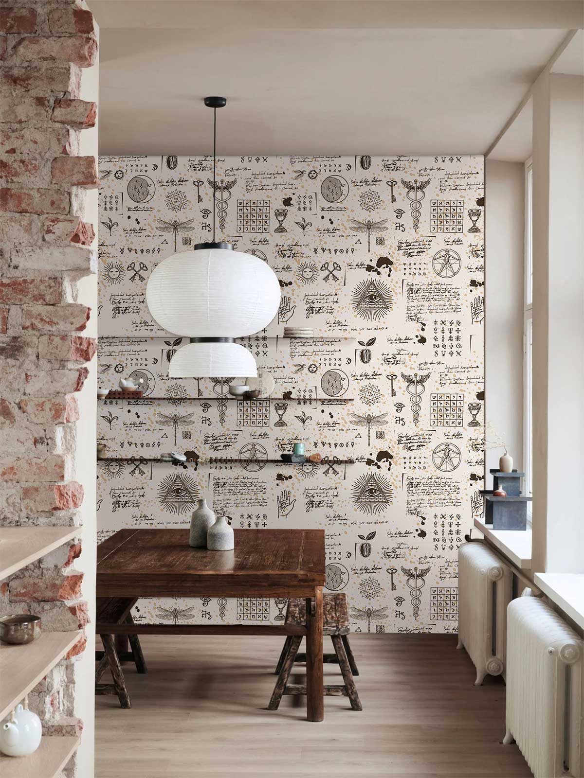These mysterious Egyptian patterns will take you to experience the culture of Egypt. Install this design, you can place yourself in an Egyptian world. Atop the beige colour background, there are many wonderful patterns. This wallpaper mural will be perfect in your bedroom, home office, hallway and dining room, and will leave you and your guests in awe at its presence.
