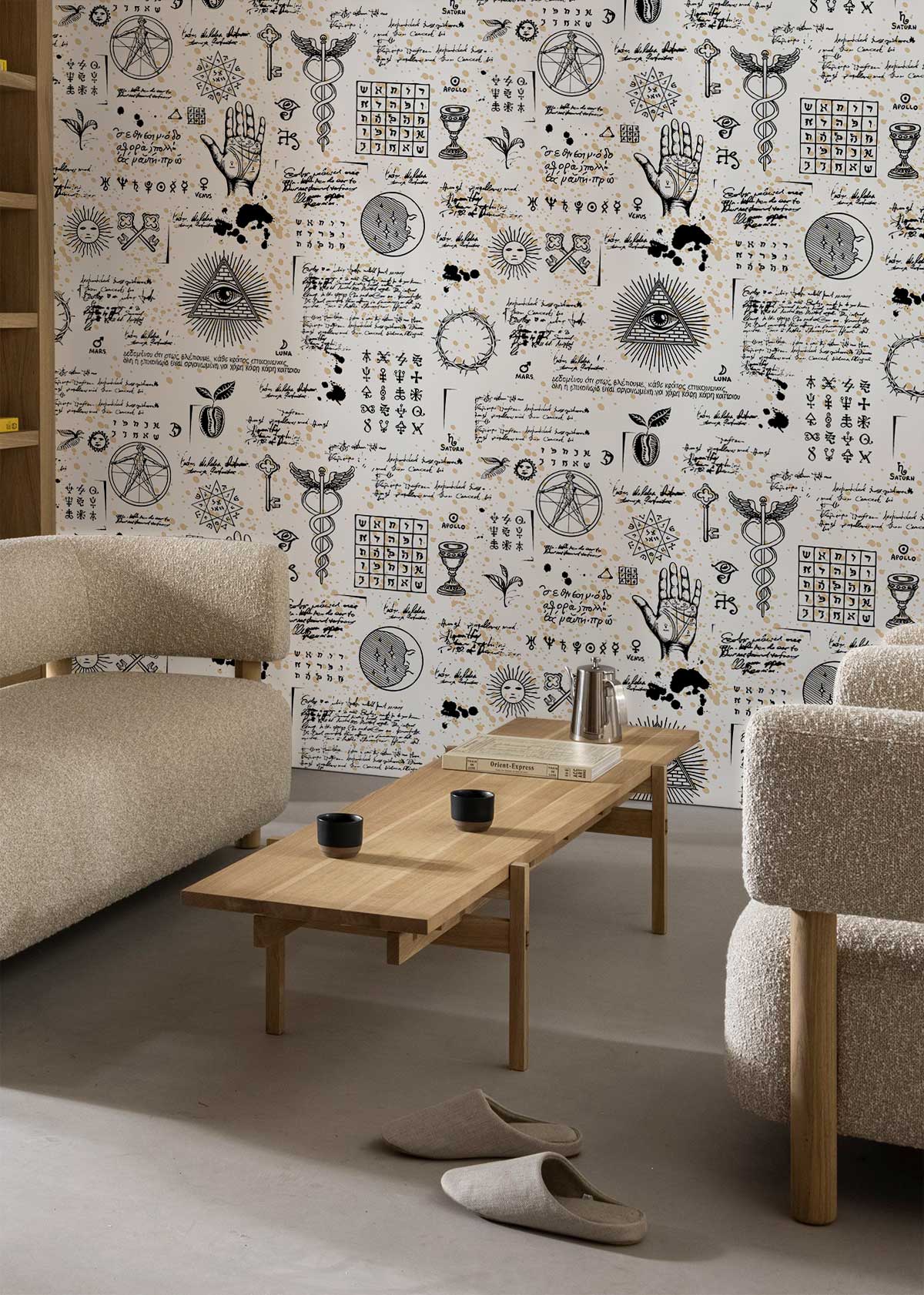 Immerse yourself in the mystique of ancient wisdom with the Egyptian Cabala Wallpaper Mural. This artistic masterpiece gracefully blends symbolic motifs and intricate patterns, inviting contemplation and intrigue. With detailed illustrations of sacred geometries and esoteric symbols, the design exudes an air of mystery and elegance. Perfectly suited for elevating sophisticated interiors, this mural creates a conversation-worthy backdrop in any room.
